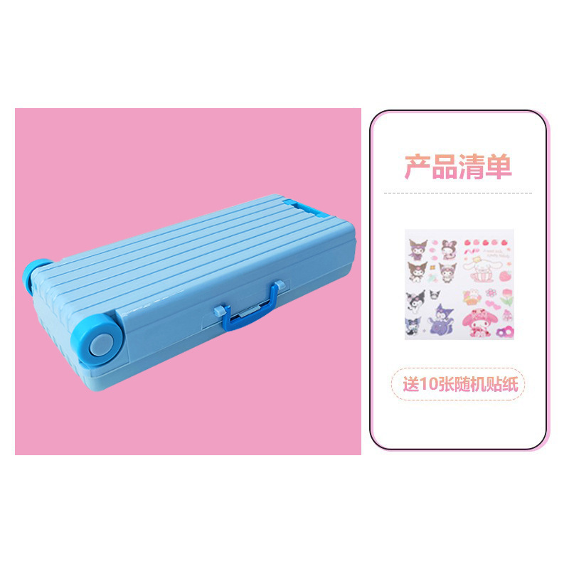 • 대형 더블 레이어 블루 필통 + 무료 스티커 10개