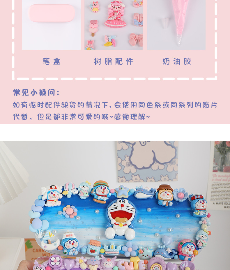 注:本店所有产品均不含税运,需要开发票的,请联系客服哟! 我们这款文具盒配件是精美卡通配件组成,需要自己动手DIY哟!有些配件没有都是会按照随机同款系列来配的哟!都是很好看。