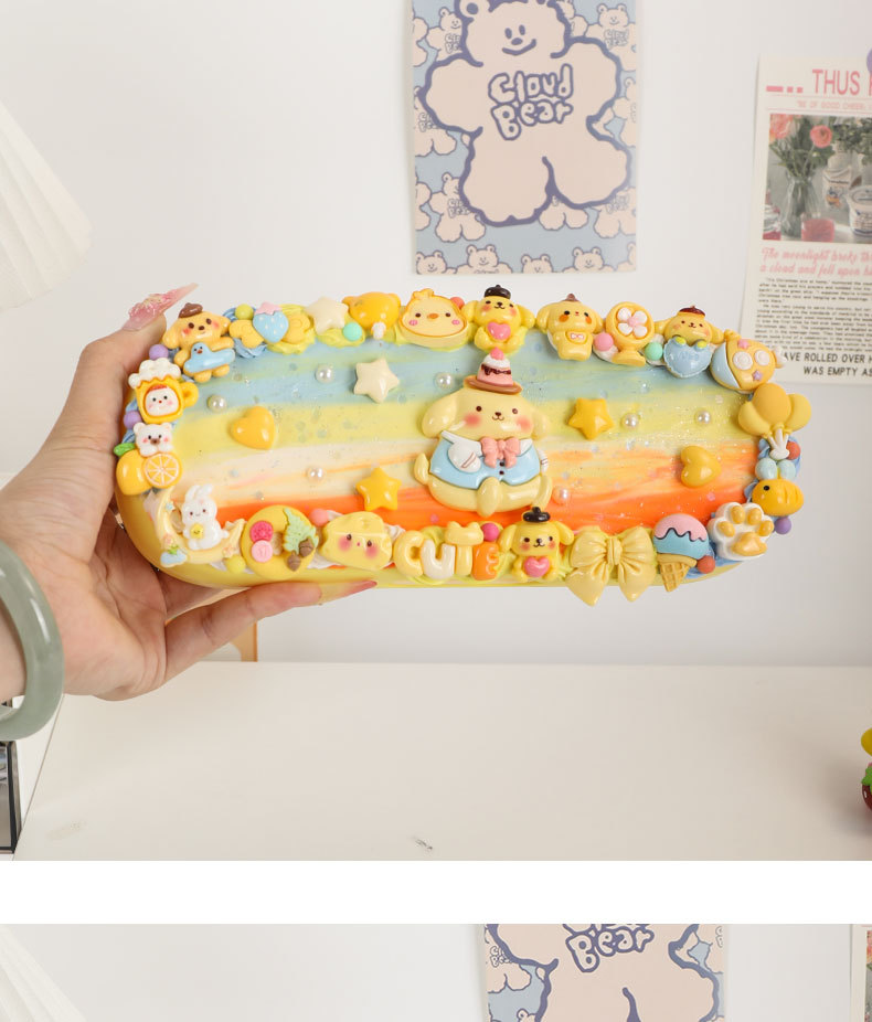 • 대형 더블 레이어 노란색 필통 + 푸딩 개 재료 팩 + [하드커버 컬러 박스]