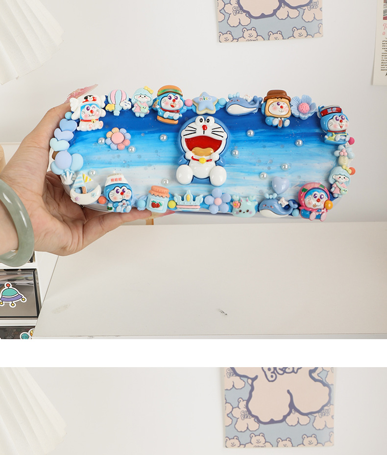 • 대형 더블 레이어 블루 필통 + 도라에몽 소재 팩 + [하드커버 컬러 박스]