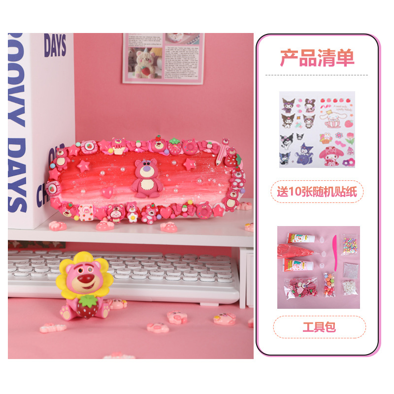 • 대형 더블 레이어 핑크 필통 + 딸기 곰 소재 팩 + [하드커버 컬러 박스]