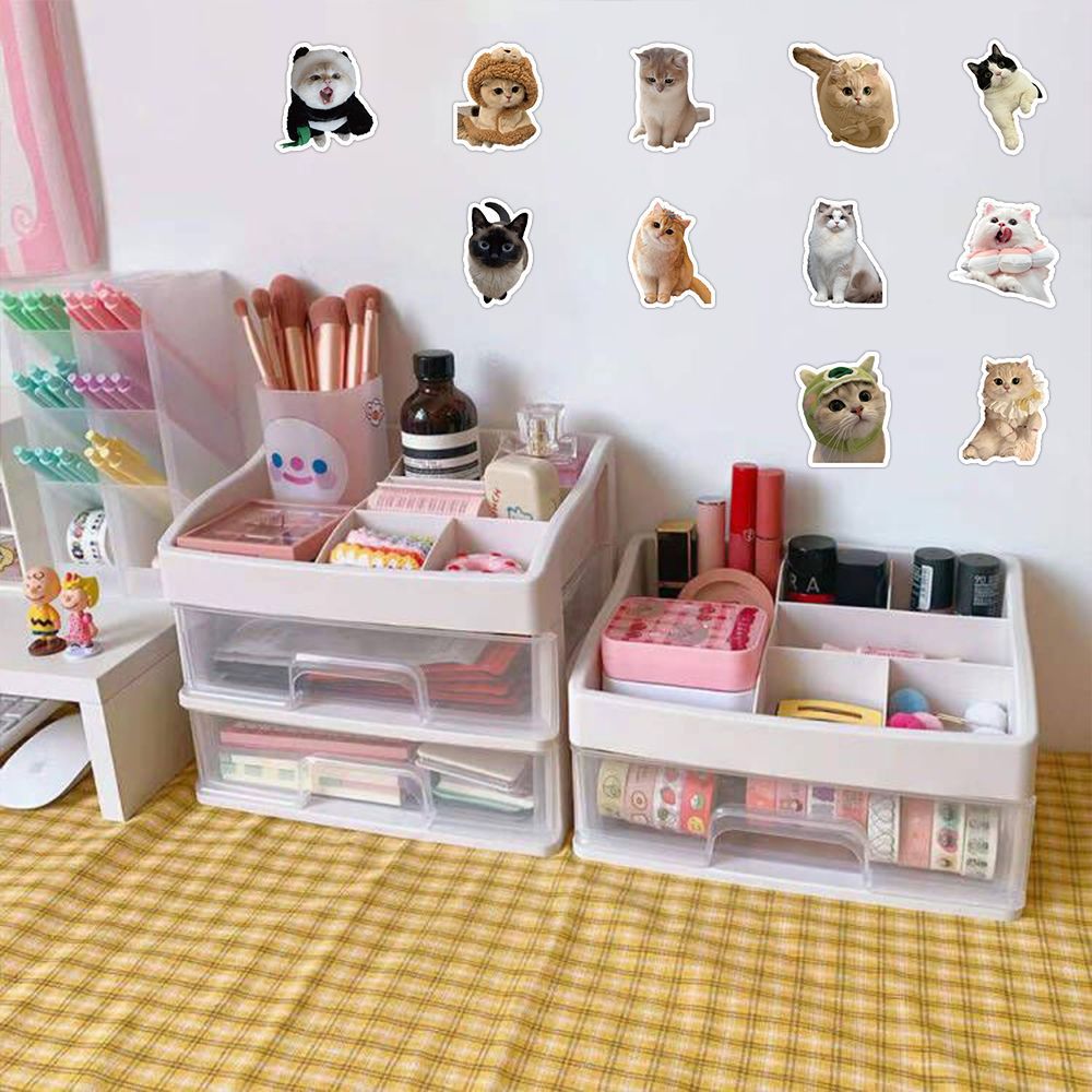 60 귀여운 현실적인 고양이 스티커 바람 높은 색상 가치 슈퍼 귀여운 작은 동물 새끼 고양이 낙서 장식 스티커스토어 가기