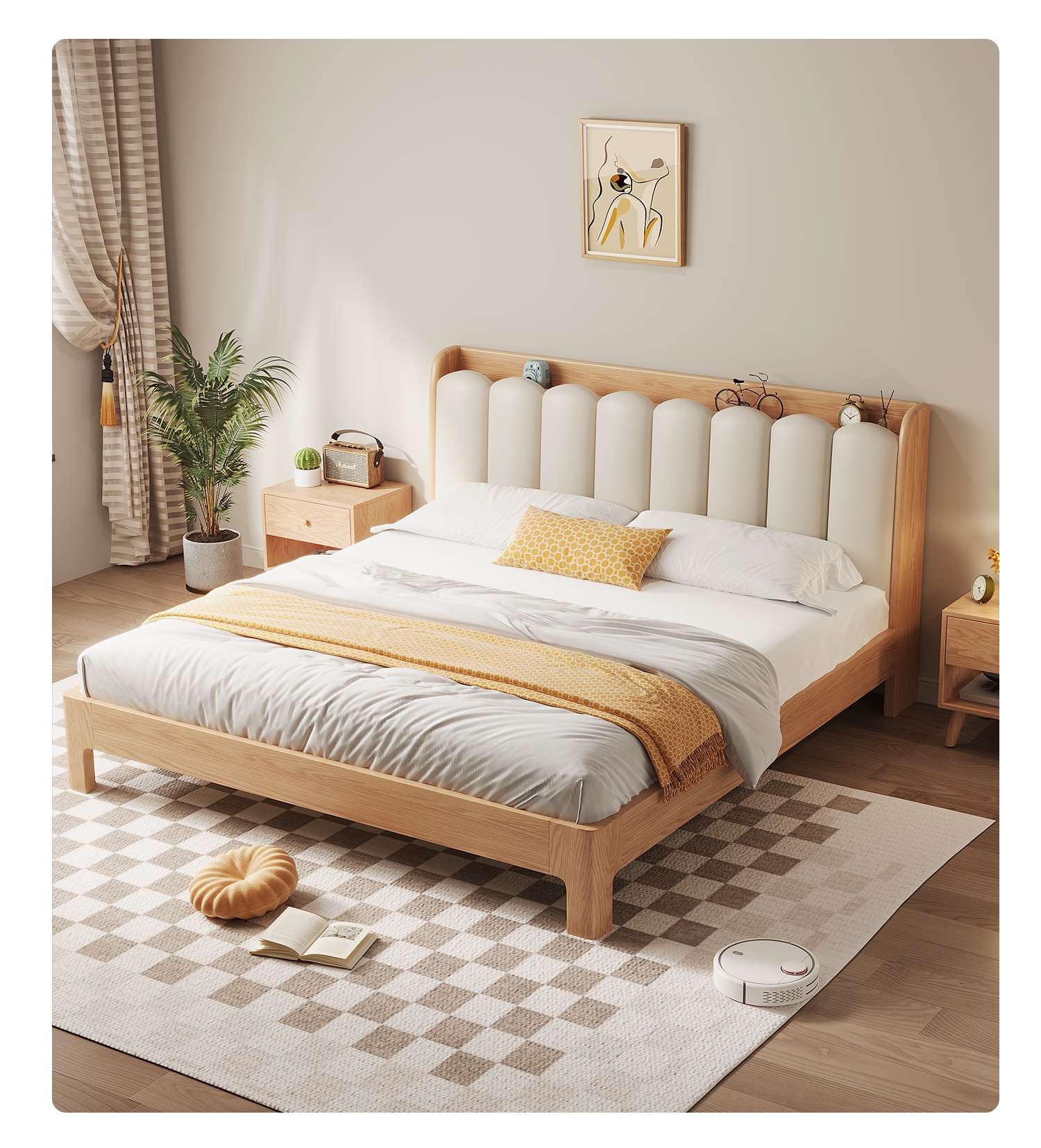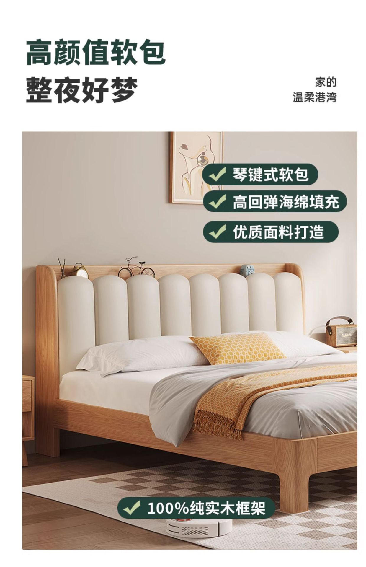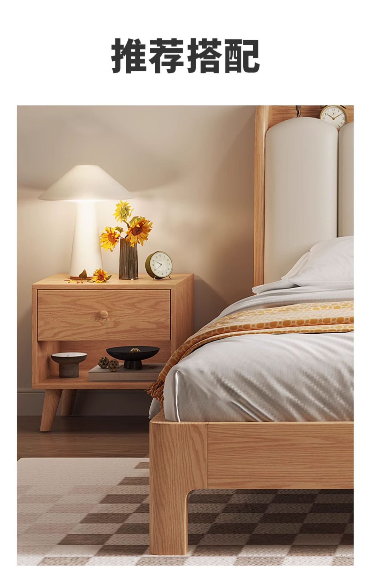 • 화이트 오크 침대 5cm 능선 보호 환경 보호 매트리스 1 침대 옆 테이블 [홈 설치]