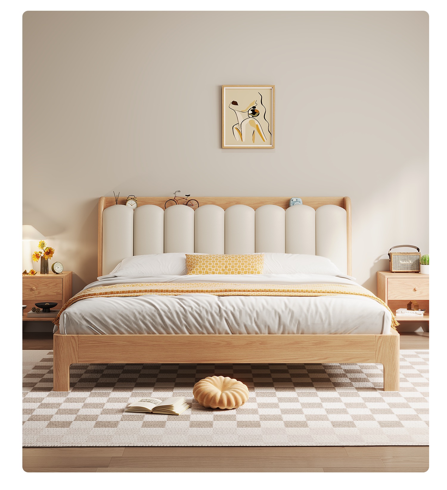 • 화이트 오크 침대 5cm 능선 보호 환경 보호 매트리스 2 침대 옆 테이블 [홈 설치]