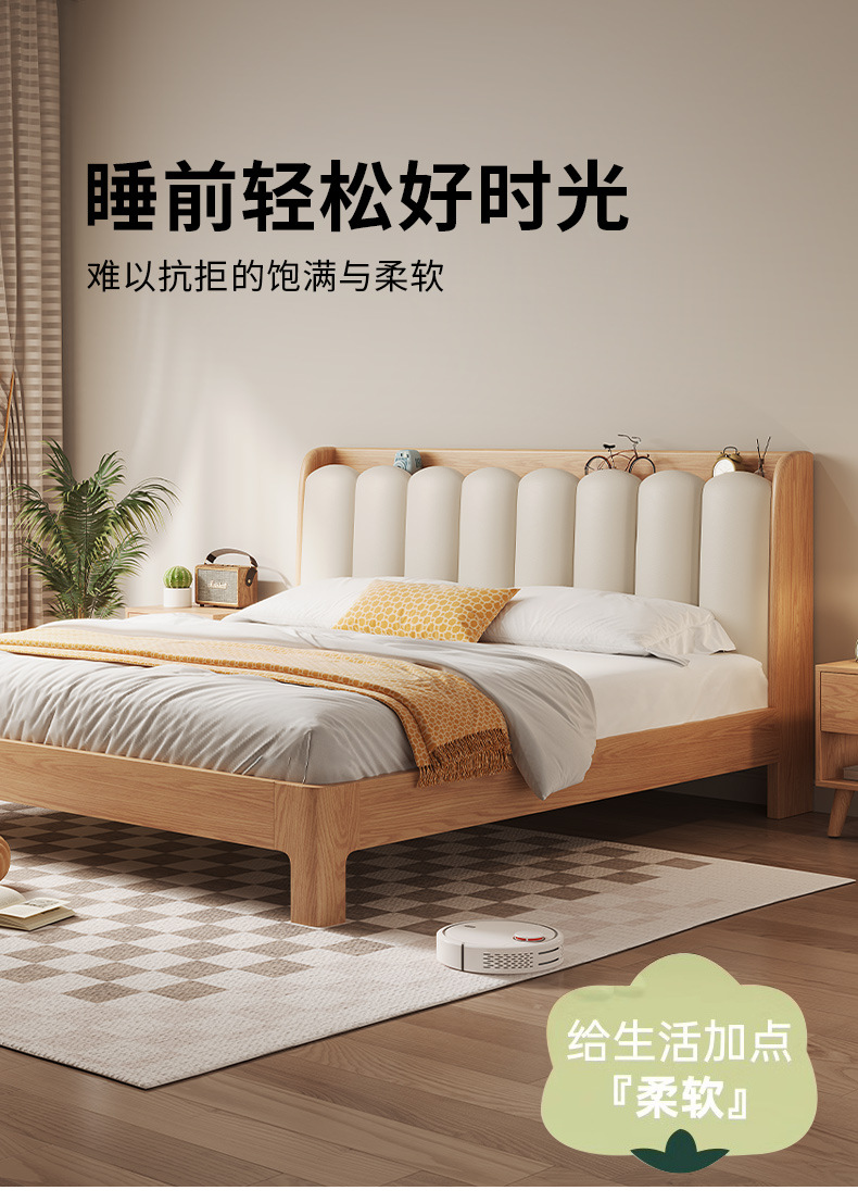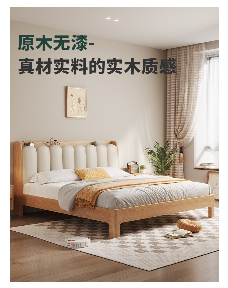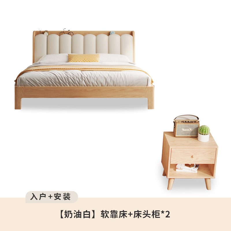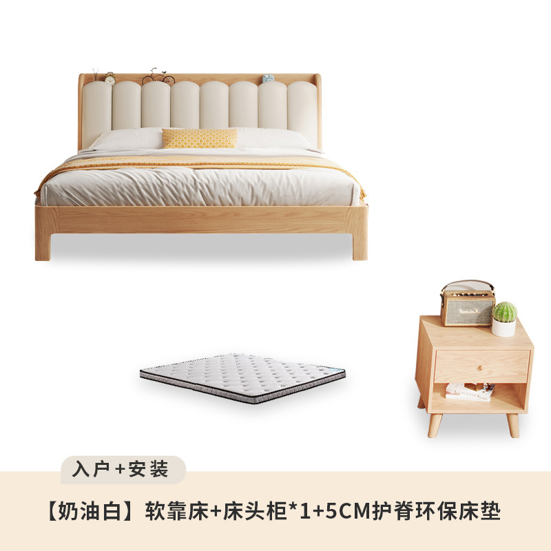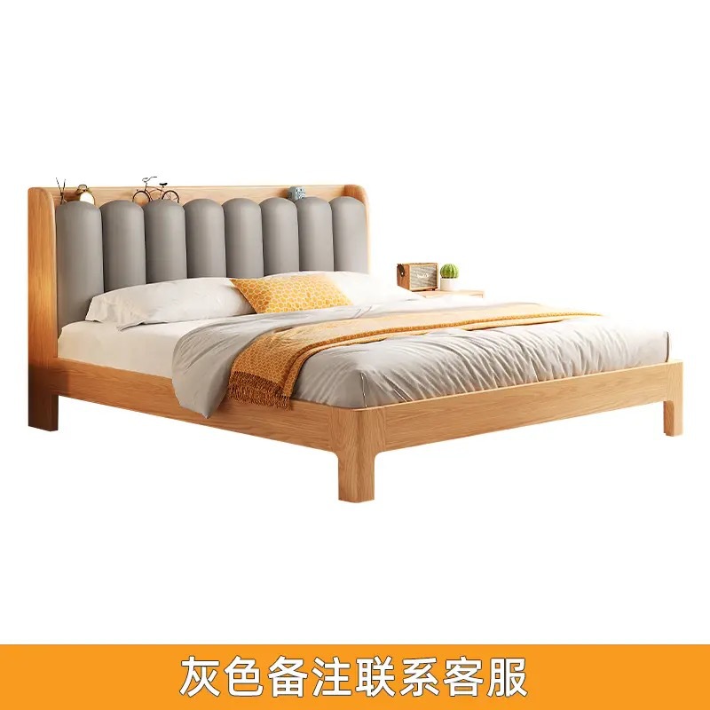 오크 침대 노르딕 로그 스타일 1.8 m 소프트 백 더블 침대 1.2 작은 아파트 순수 나무 풀 솔리드 우드 침대 현대 단순스토어 가기