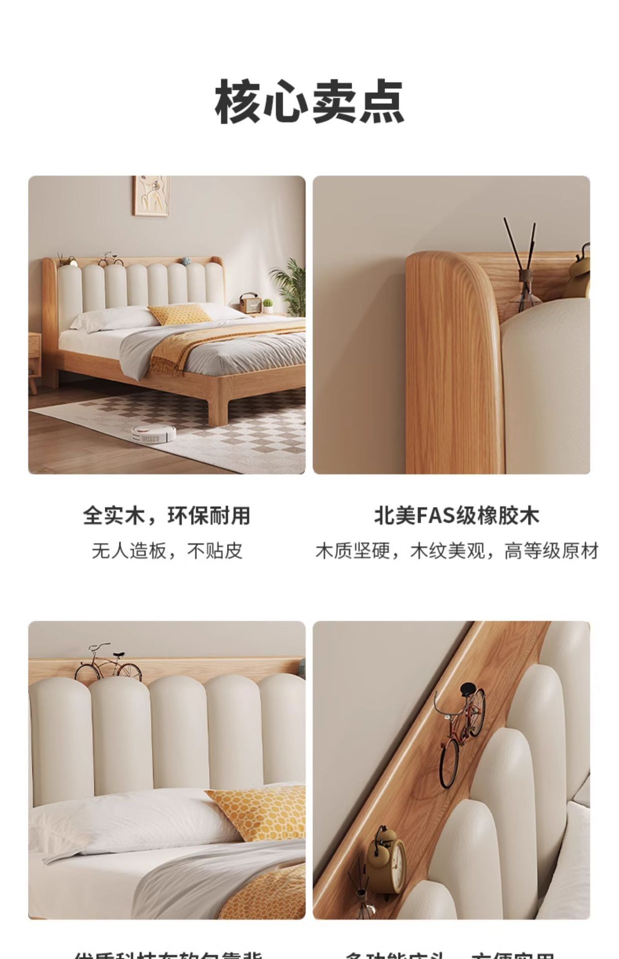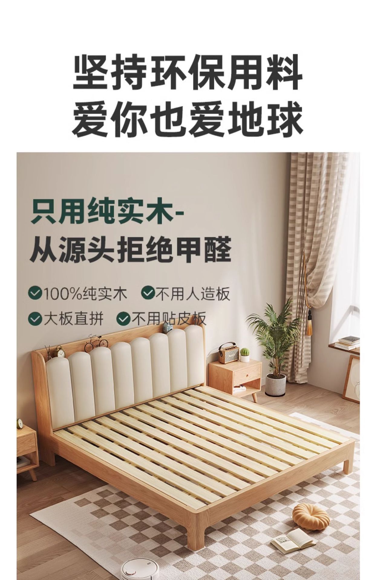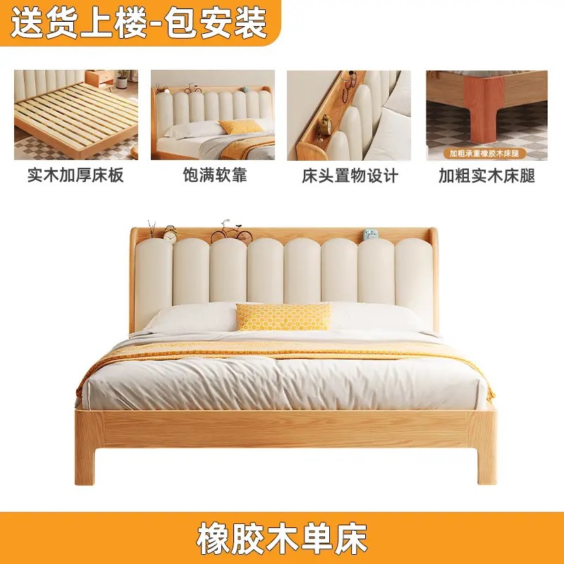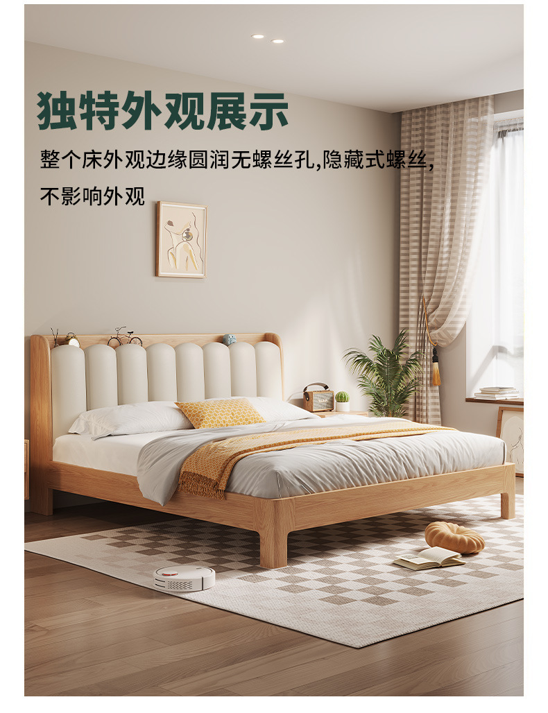 오크 침대 노르딕 로그 스타일 1.8 m 소프트 백 더블 침대 1.2 작은 아파트 순수 나무 풀 솔리드 우드 침대 현대 단순스토어 가기