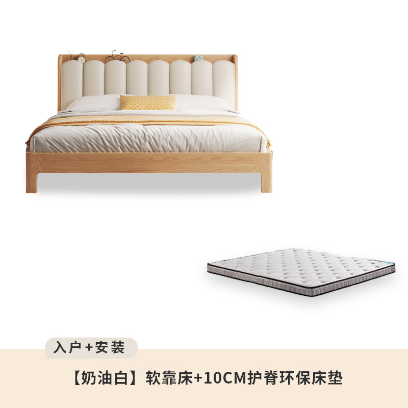• 화이트 오크 침대 10cm 능선 보호 환경 보호 매트리스 1 침대 옆 테이블 [홈 설치]