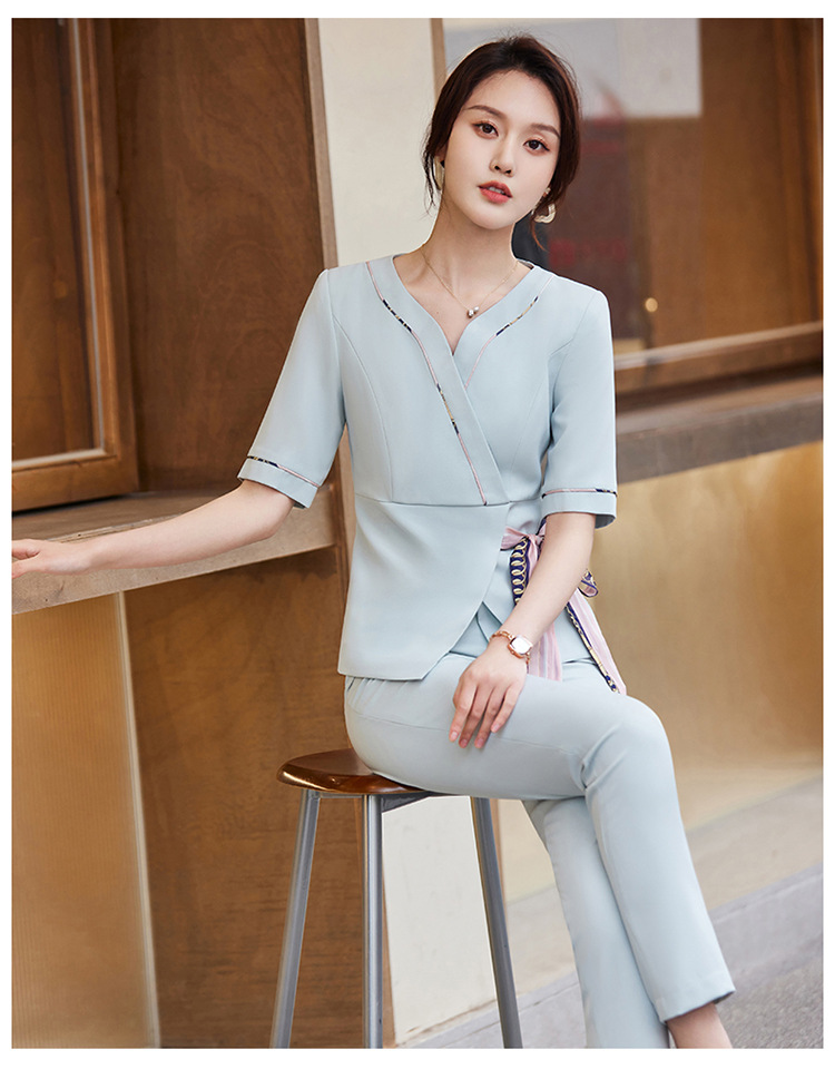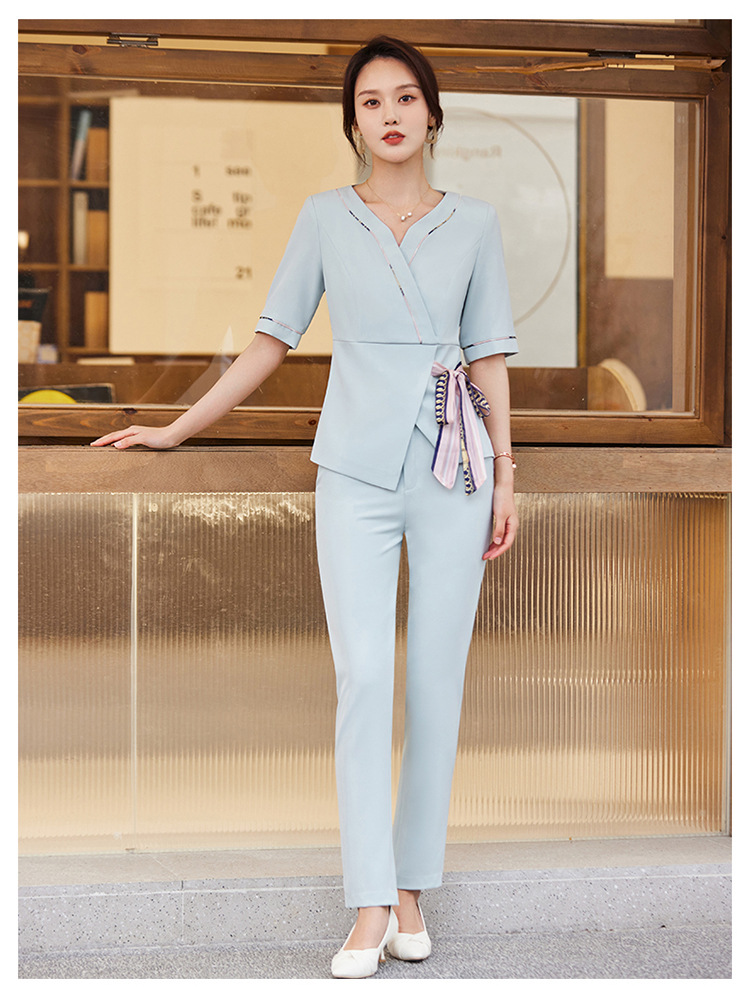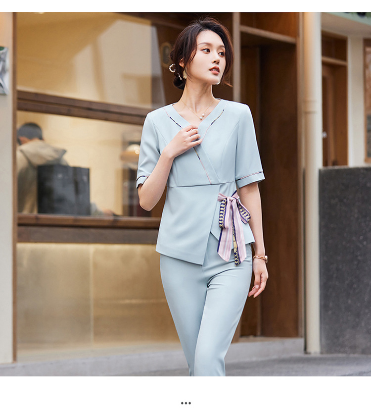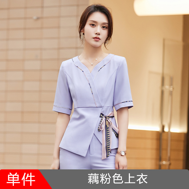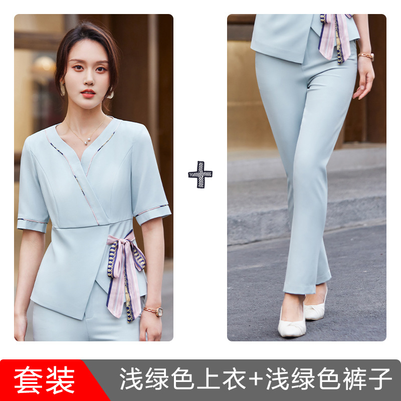 2024 미용사 작업 얇은 뷰티 살롱 기술자 의류 호텔 발 마사지 의류 여성 반팔