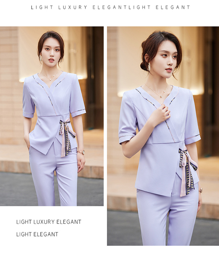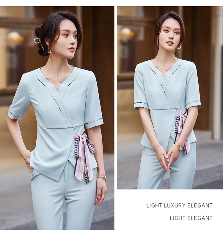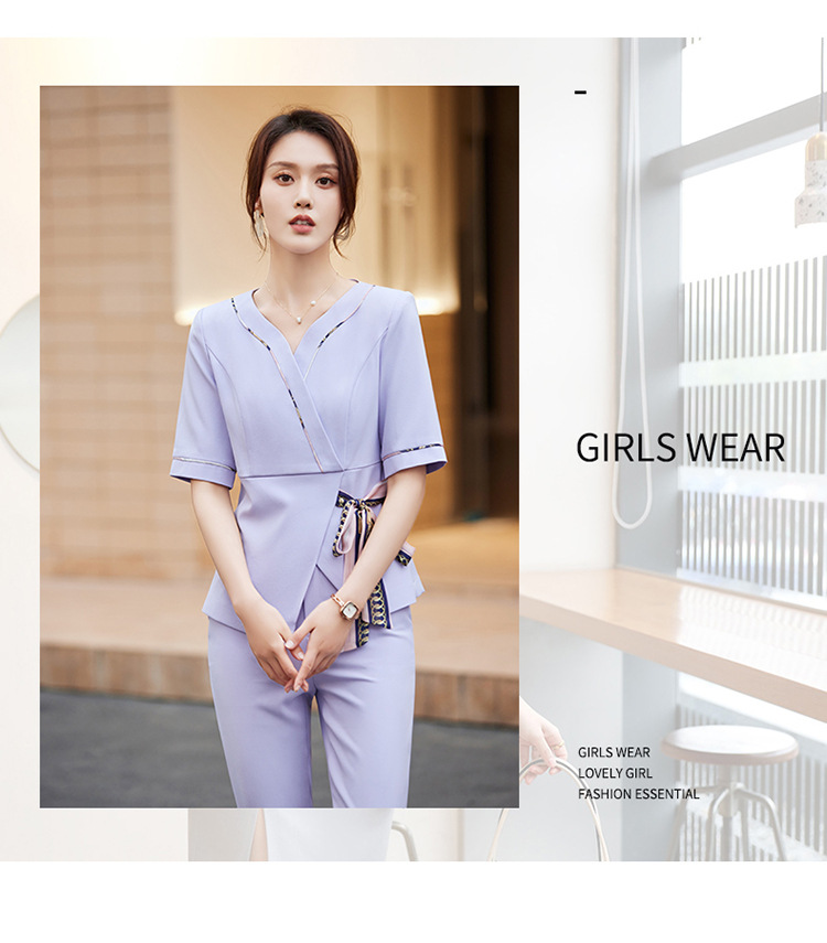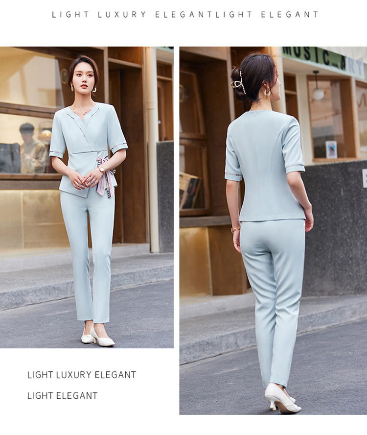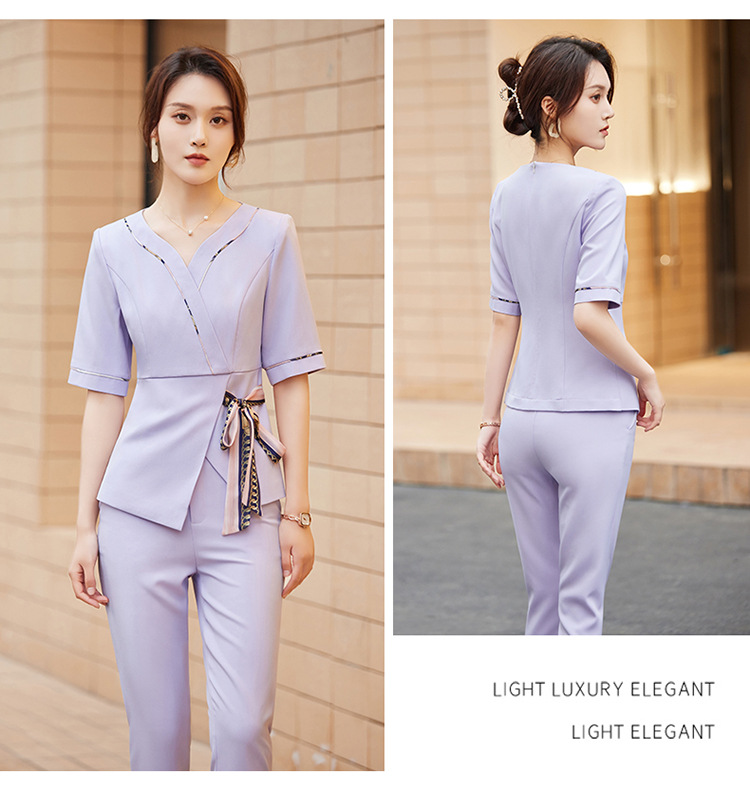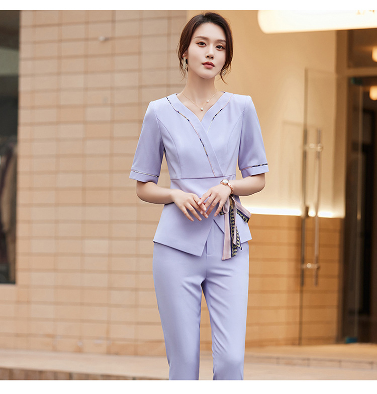 2024 미용사 작업 얇은 뷰티 살롱 기술자 의류 호텔 발 마사지 의류 여성 반팔