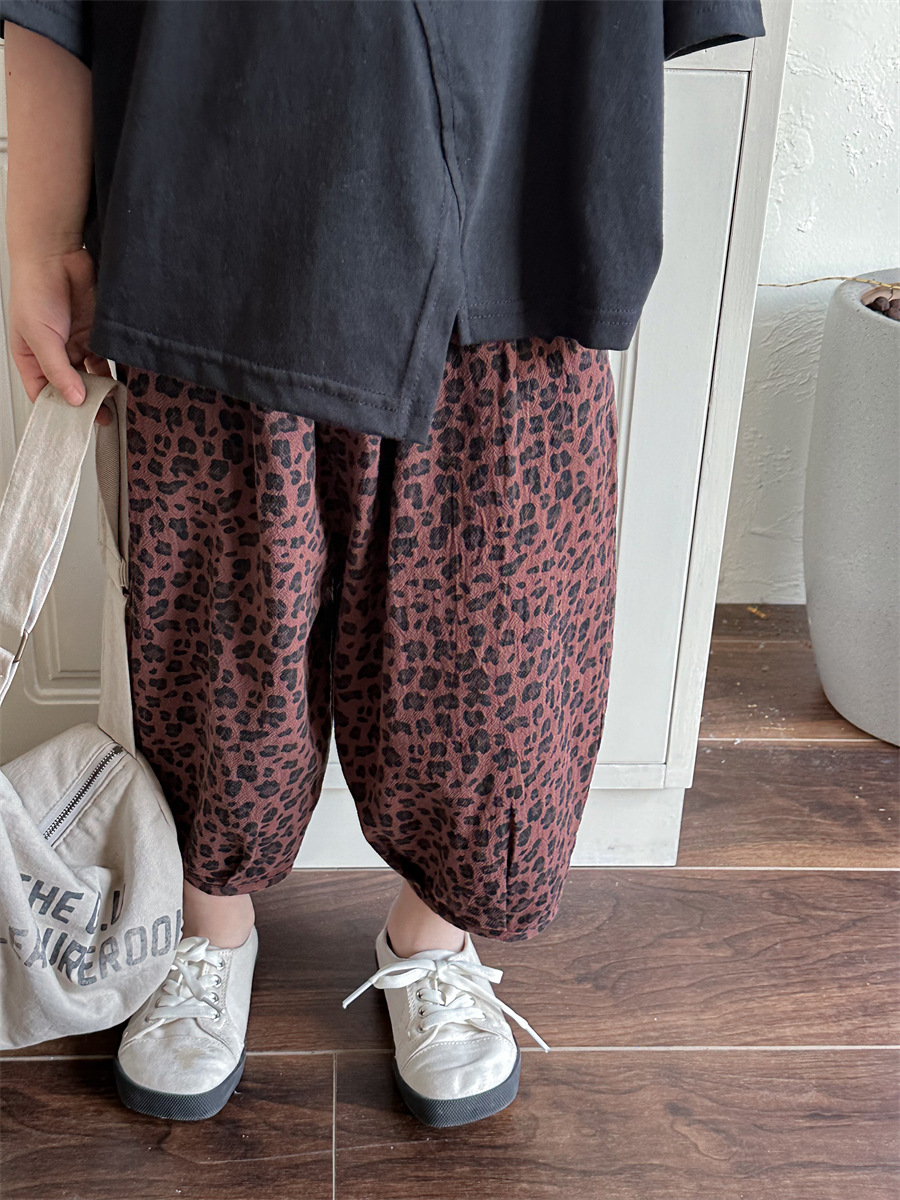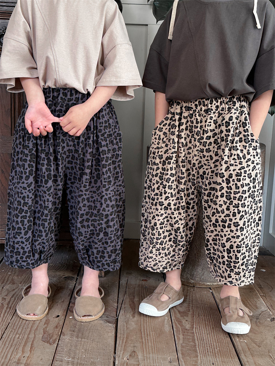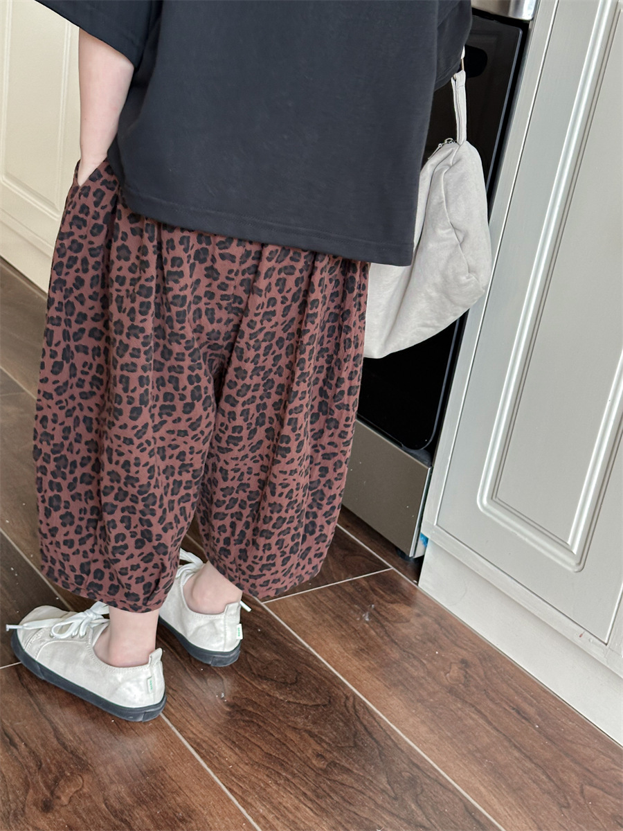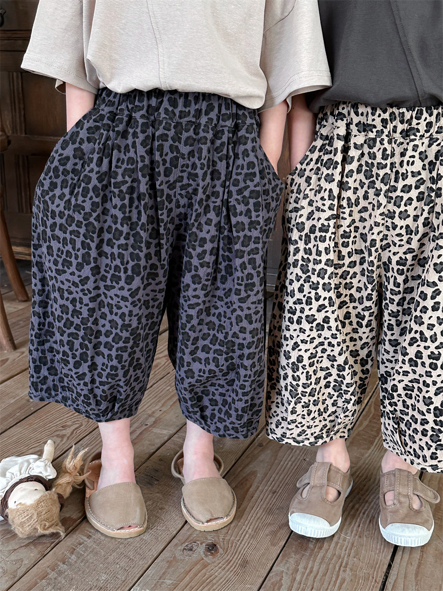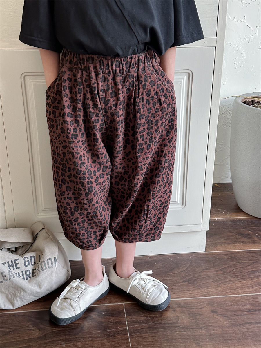 佳叶童品20245 아동용 여름 신상 레오파드 프린트 랜턴 팬츠 남녀 아기용 숲풍 레트로 8부 바지
