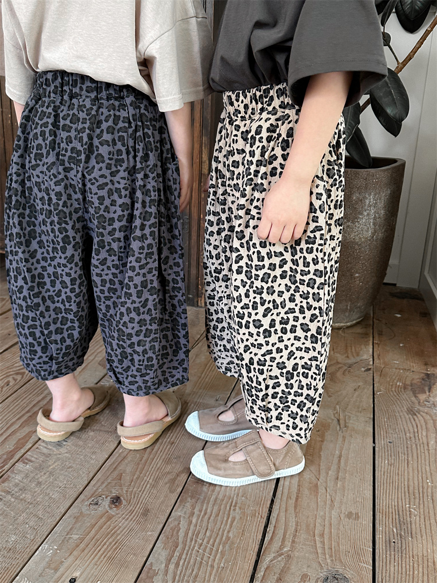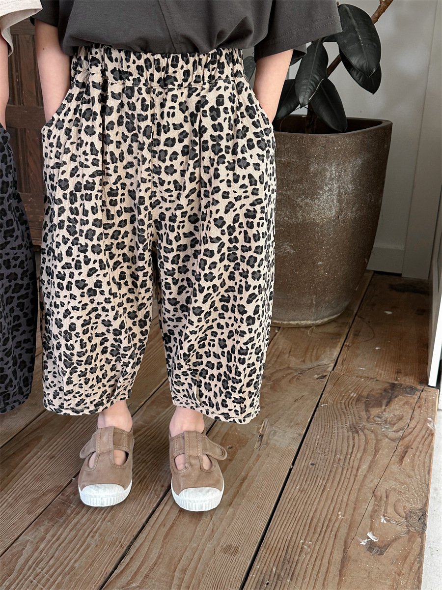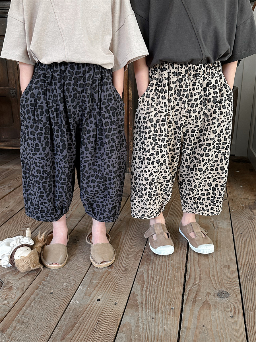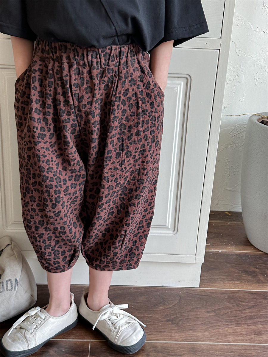 佳叶童品20245 아동용 여름 신상 레오파드 프린트 랜턴 팬츠 남녀 아기용 숲풍 레트로 8부 바지