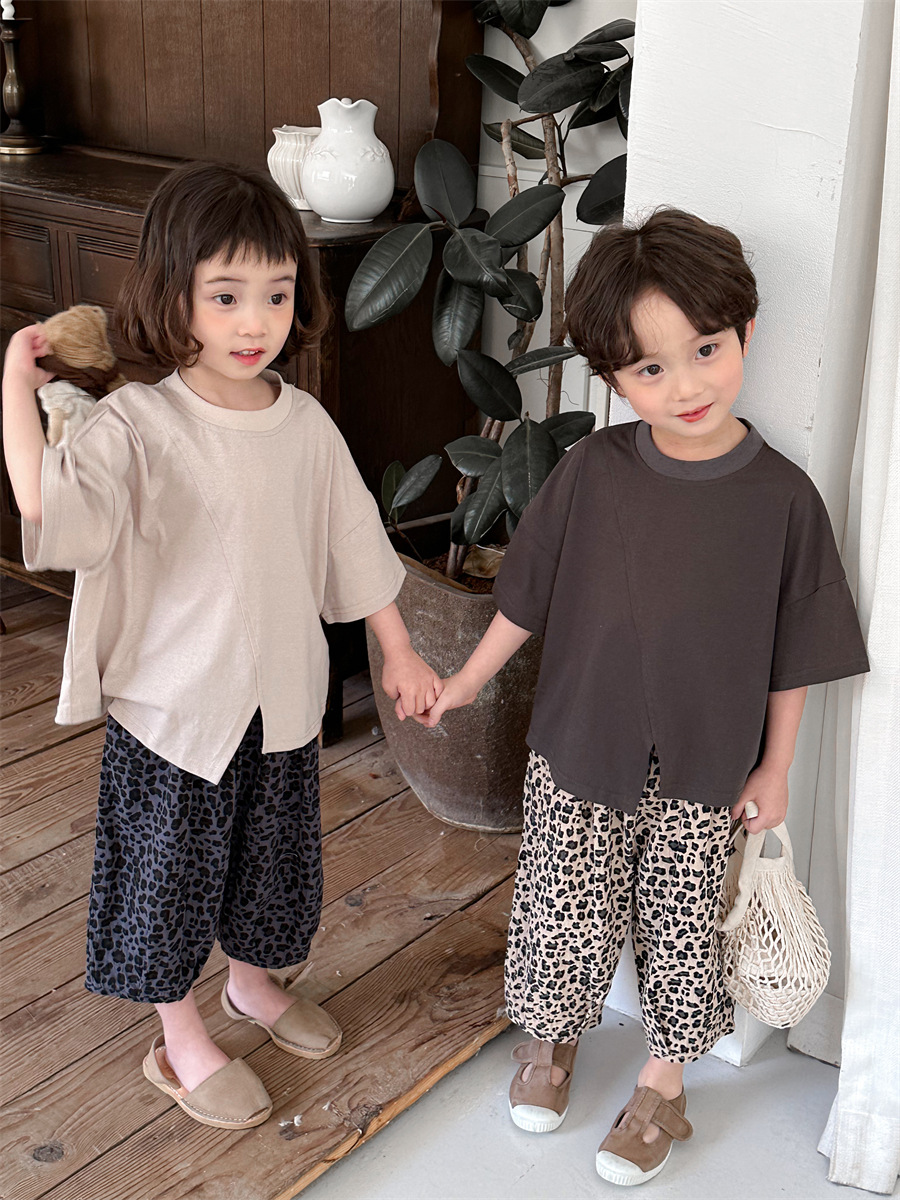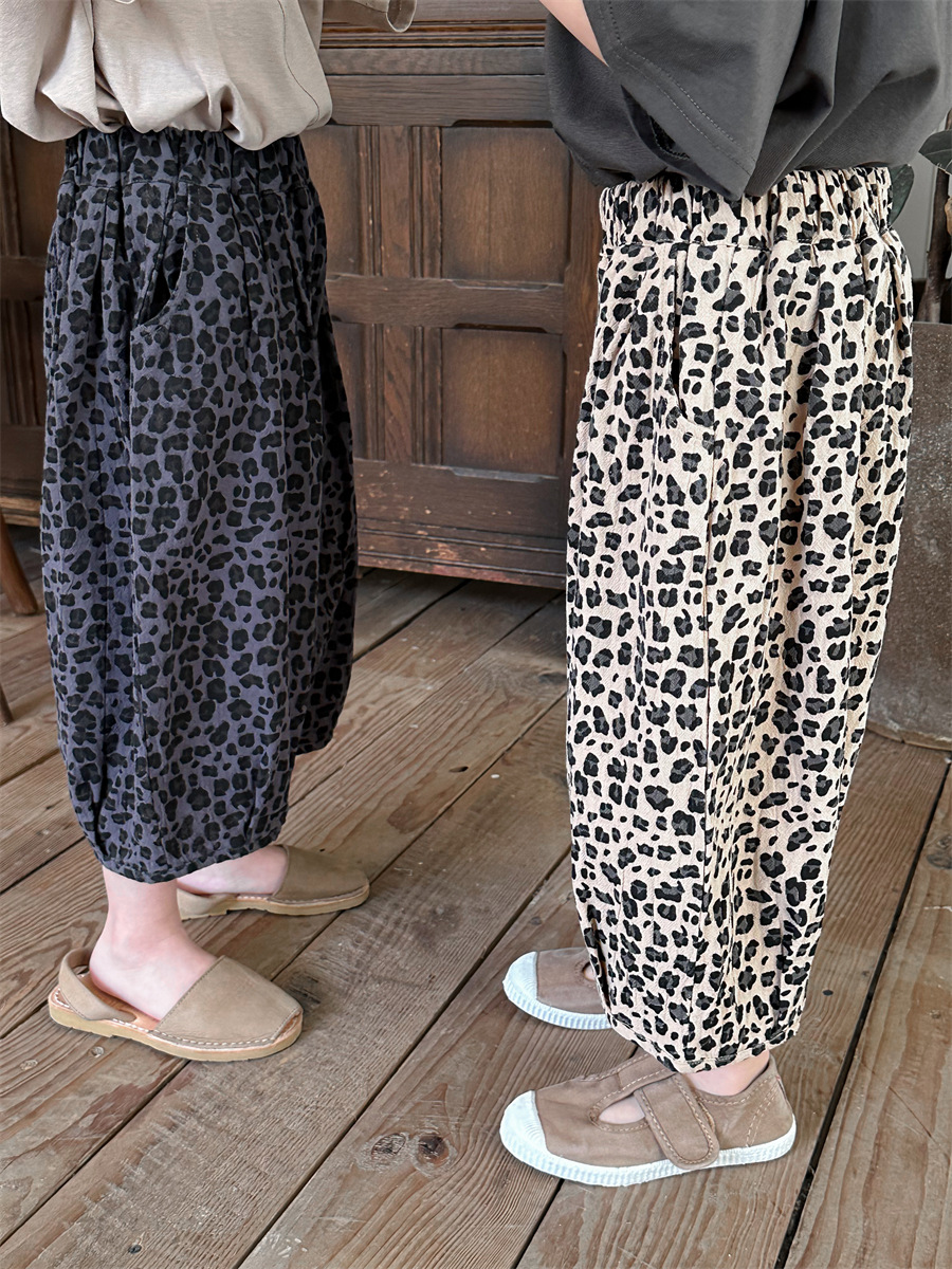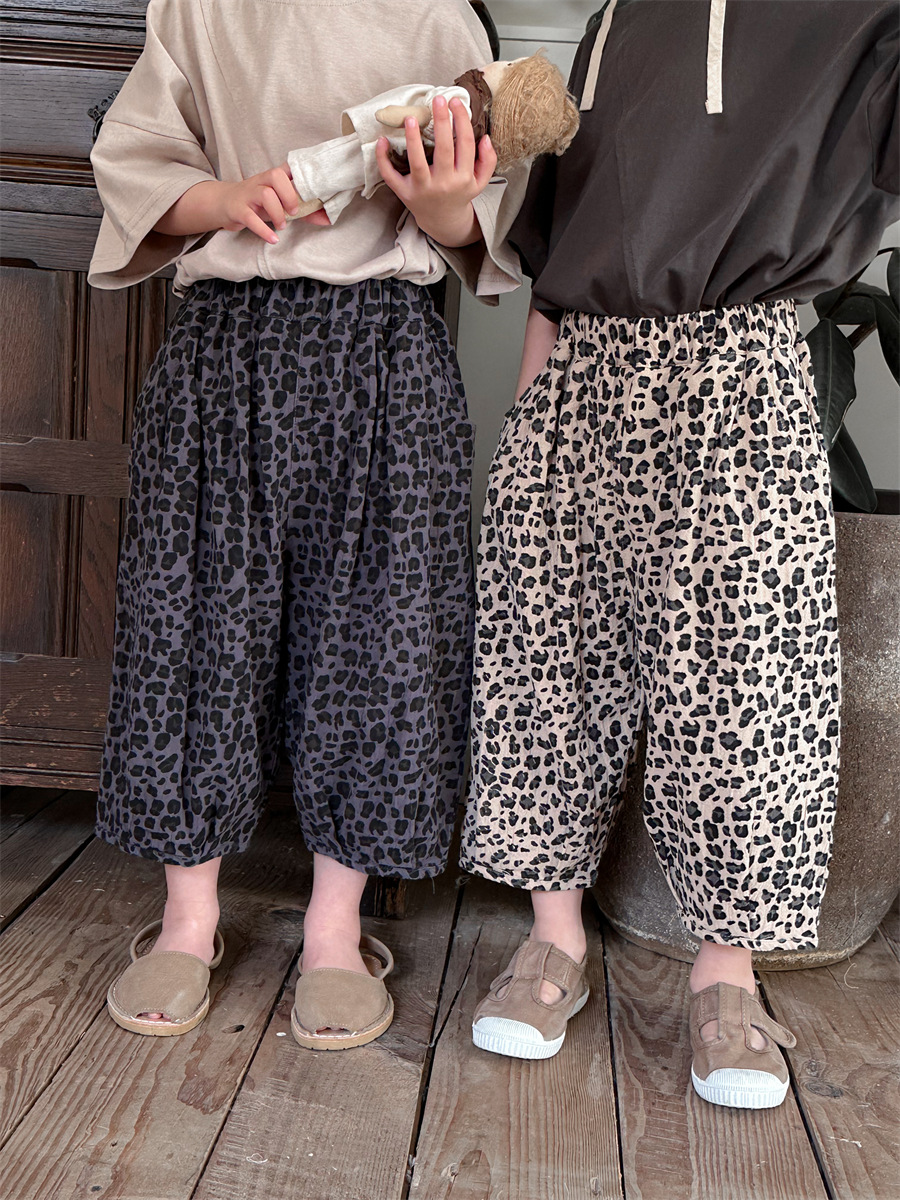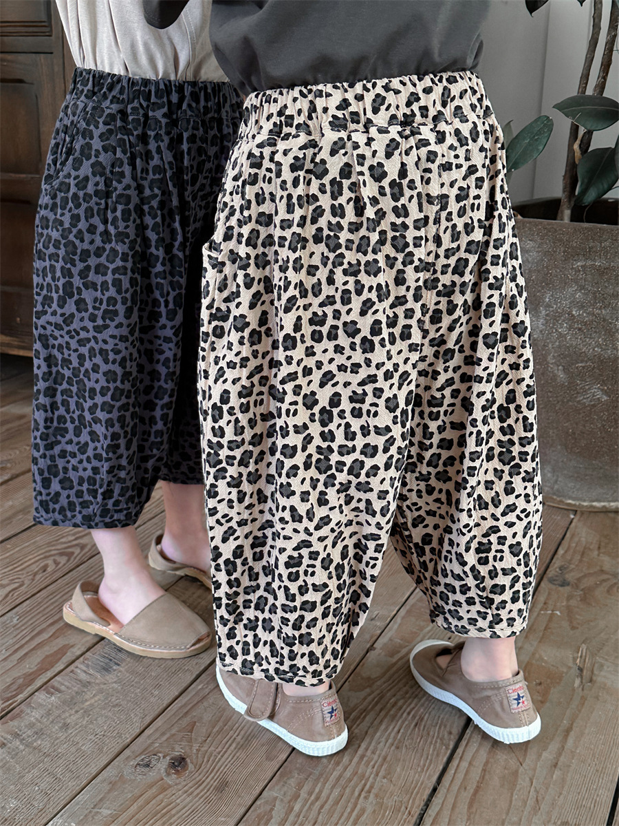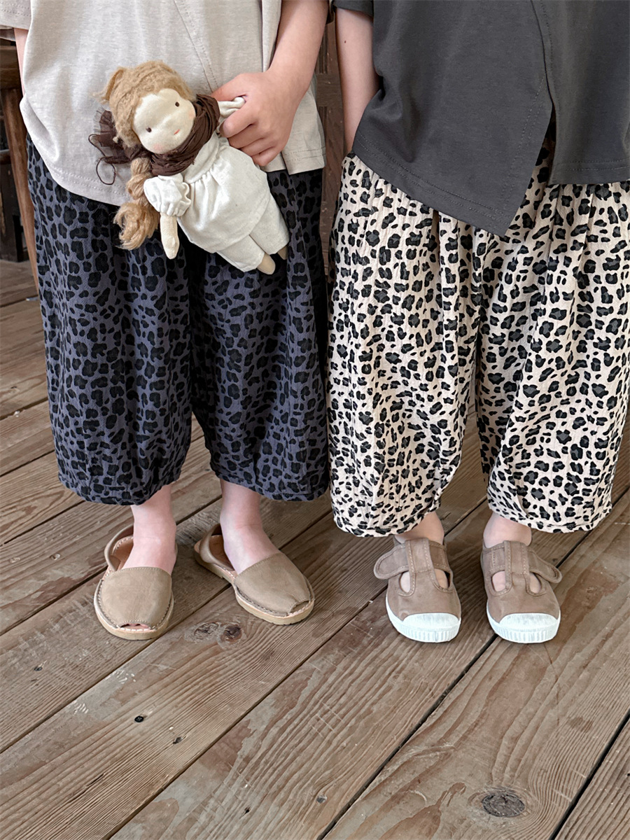 佳叶童品20245 아동용 여름 신상 레오파드 프린트 랜턴 팬츠 남녀 아기용 숲풍 레트로 8부 바지