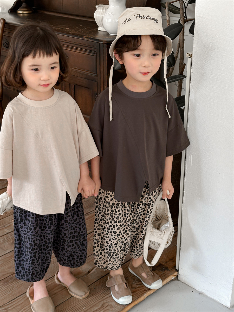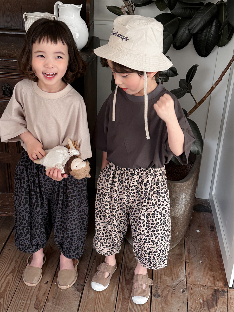 佳叶童品20245 아동용 여름 신상 레오파드 프린트 랜턴 팬츠 남녀 아기용 숲풍 레트로 8부 바지스토어 가기