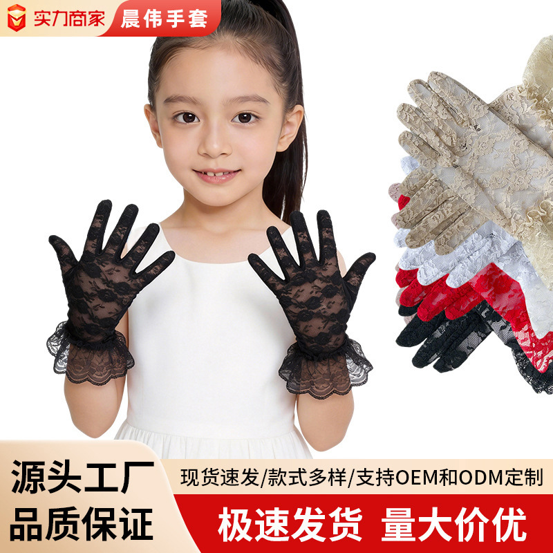 국경을 넘는 새로운 스타일의 어린이용 레이스 장갑, 티파티 장갑, 여름용 얇은 우아한 신부 장갑, 소녀용 짧은 장갑스토어 가기