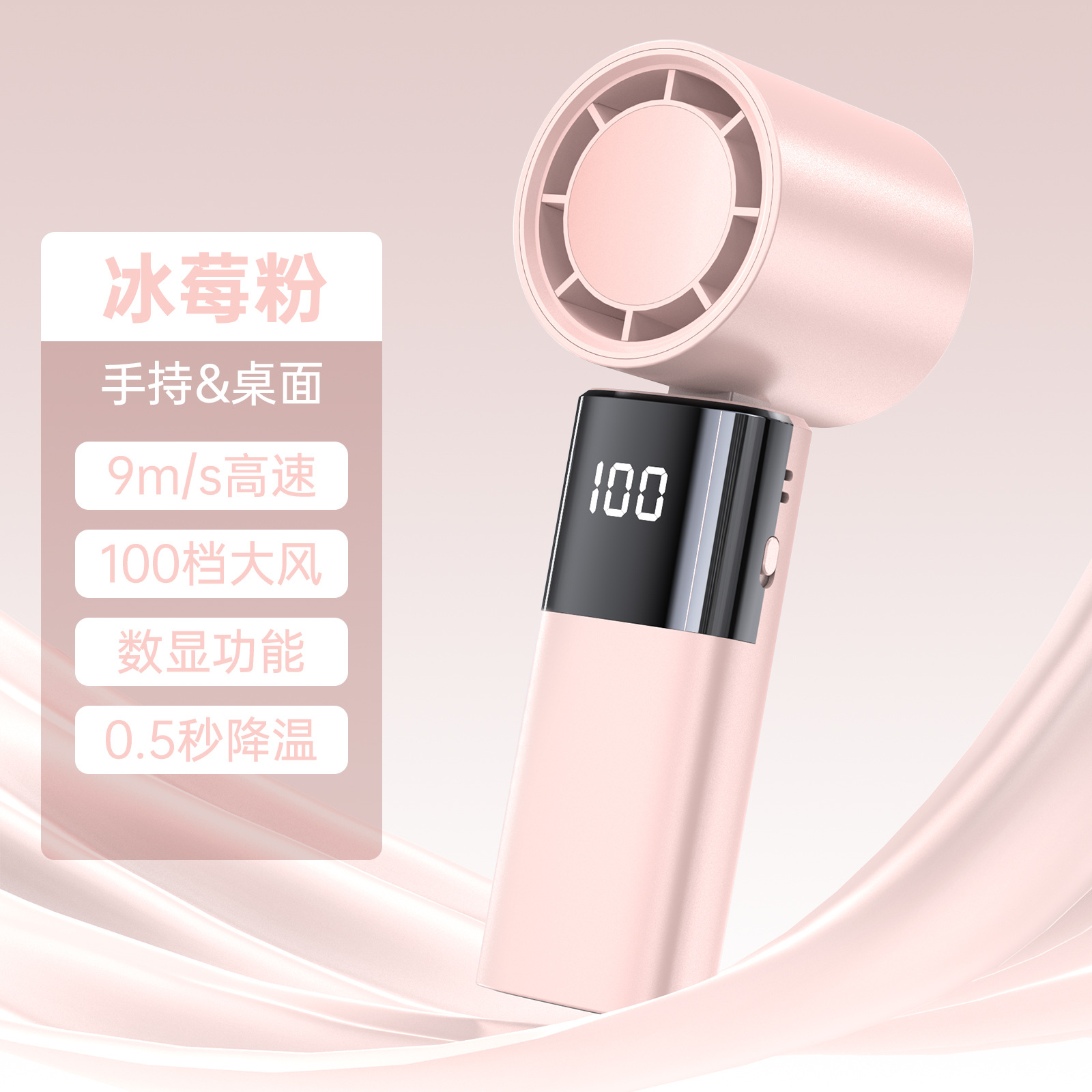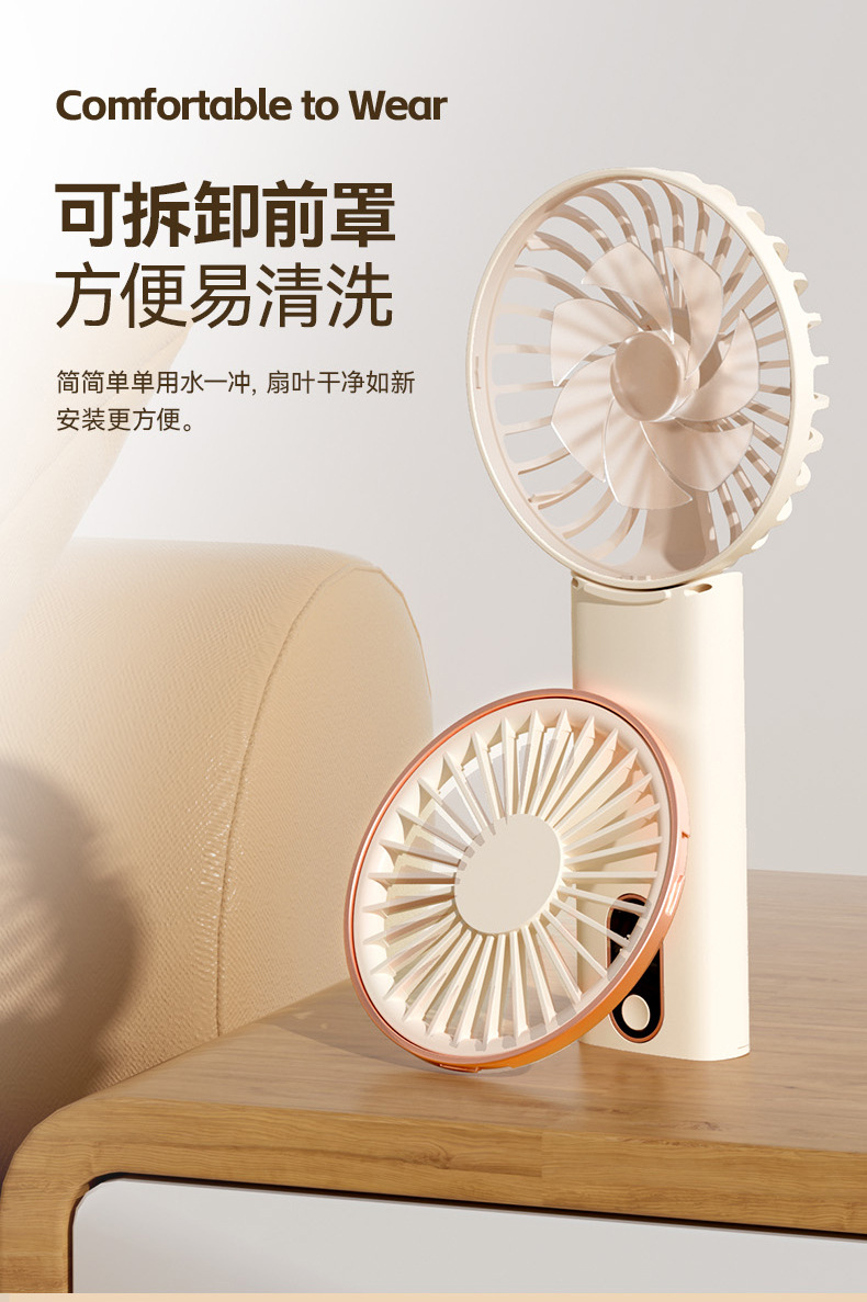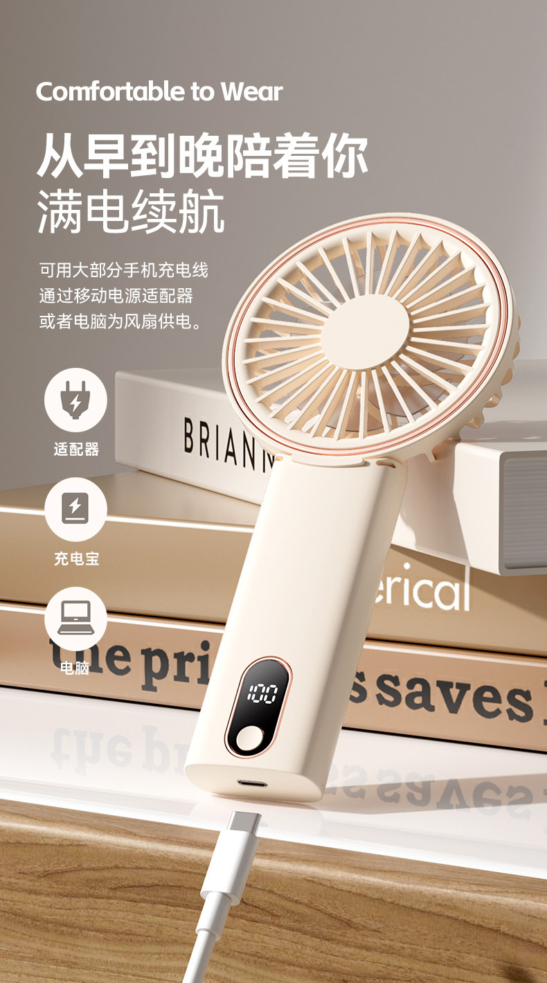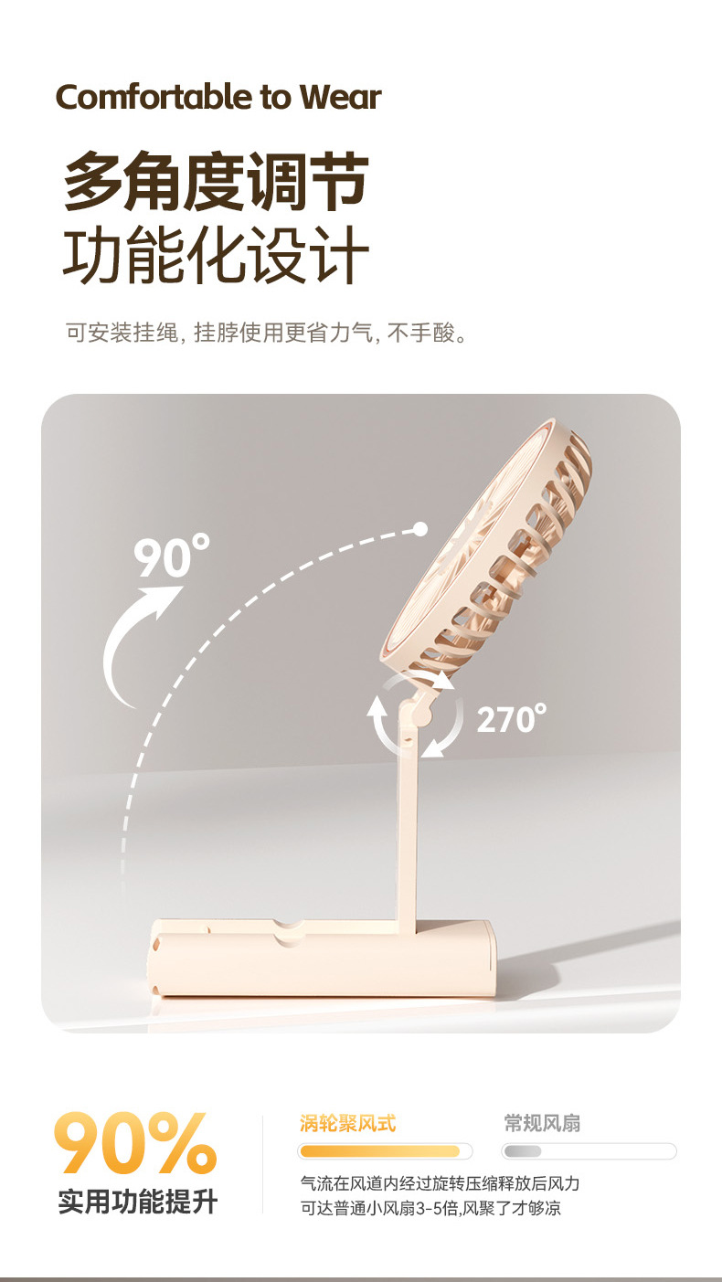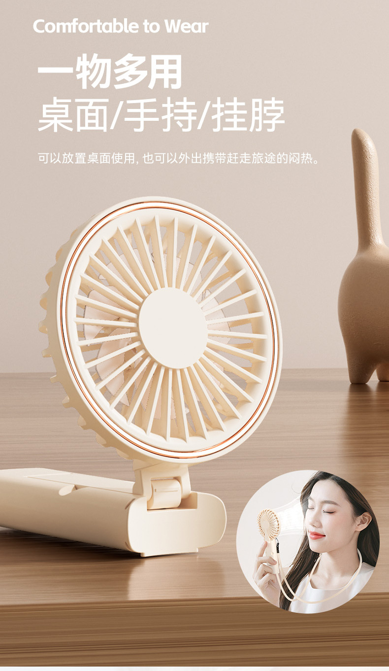 迷你手持风扇 usb充电折叠冰敷风扇数显桌面挂脖可充电办公室风扇
