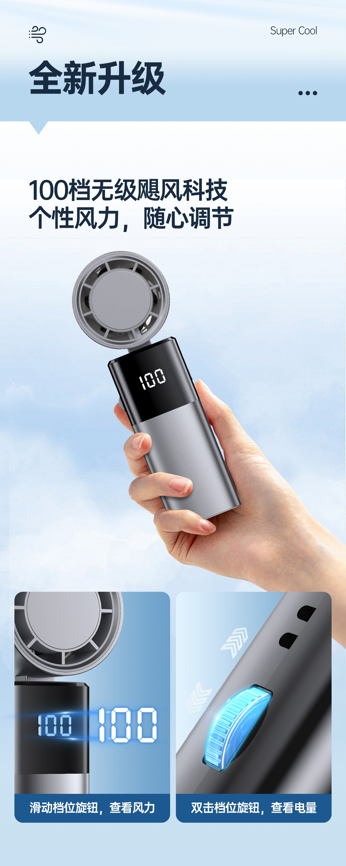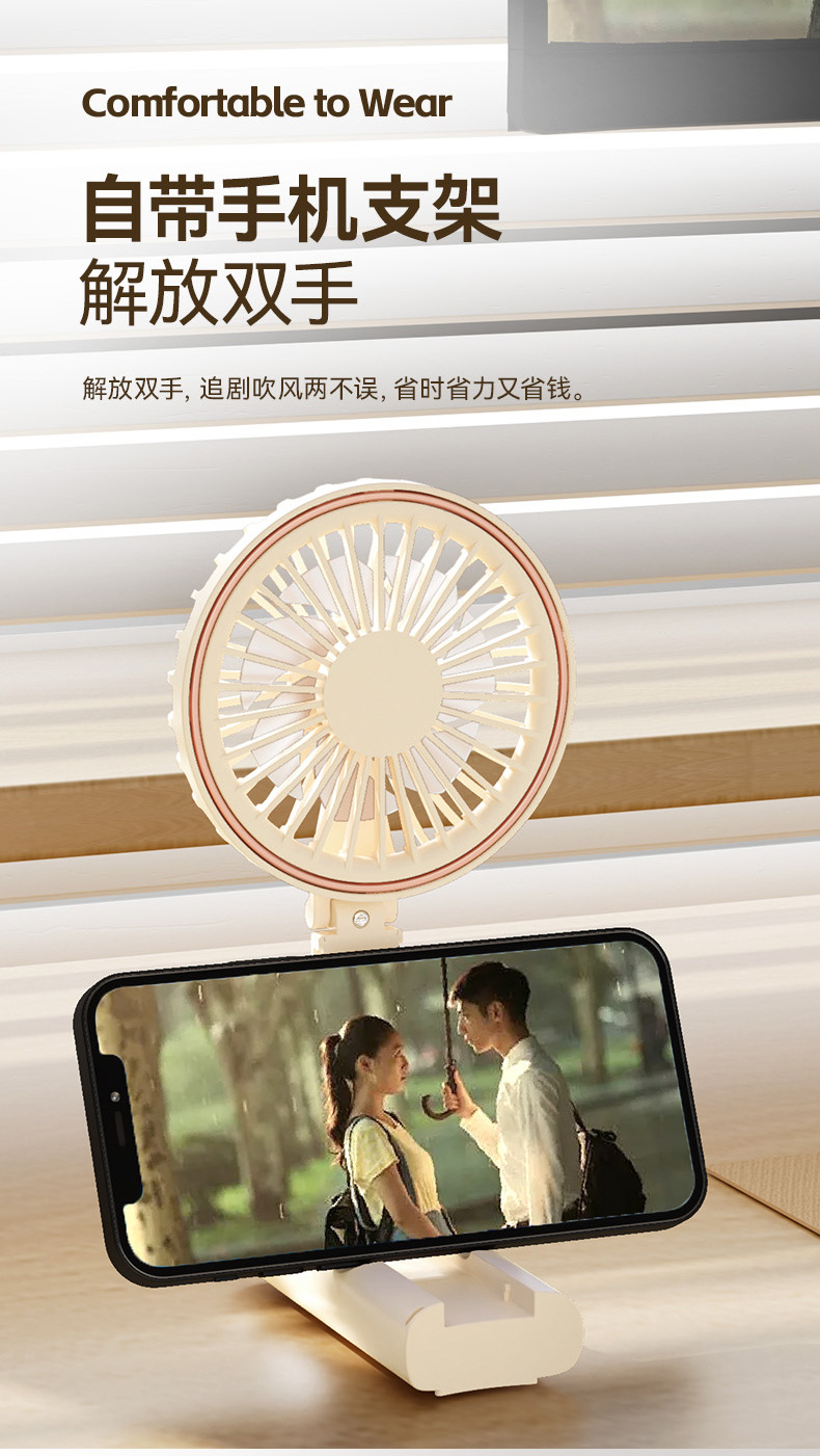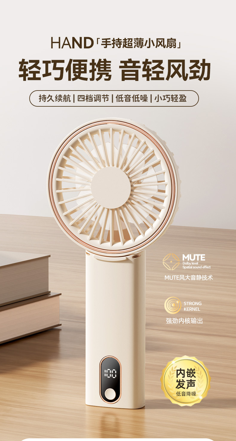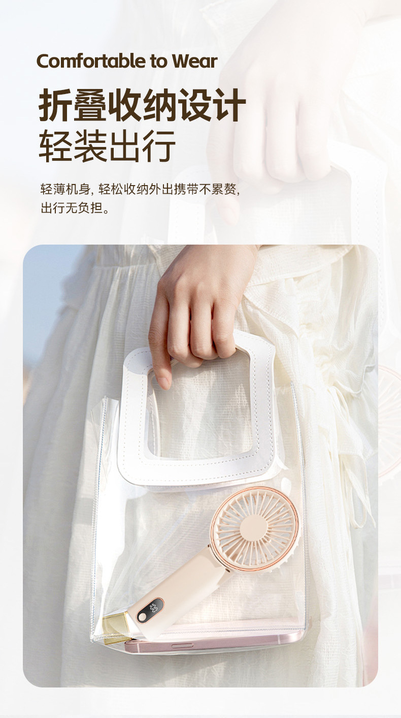迷你手持风扇 usb充电折叠冰敷风扇数显桌面挂脖可充电办公室风扇