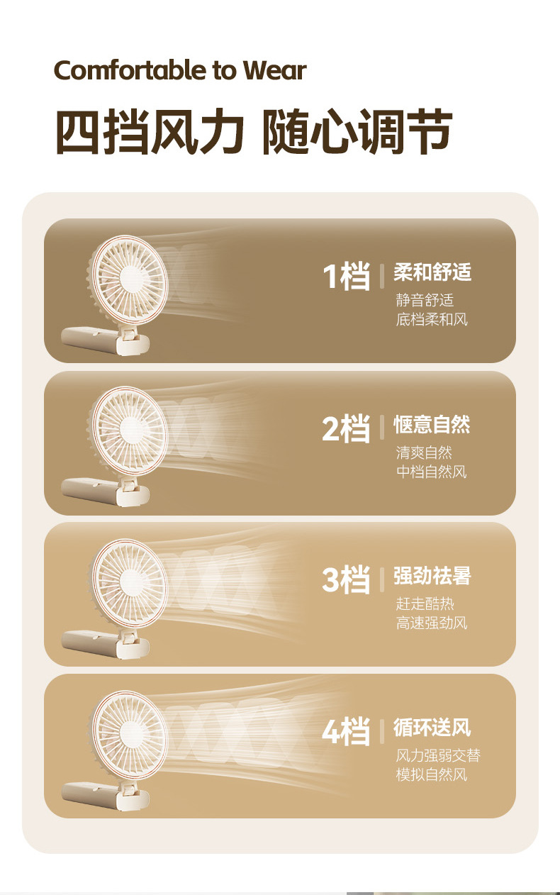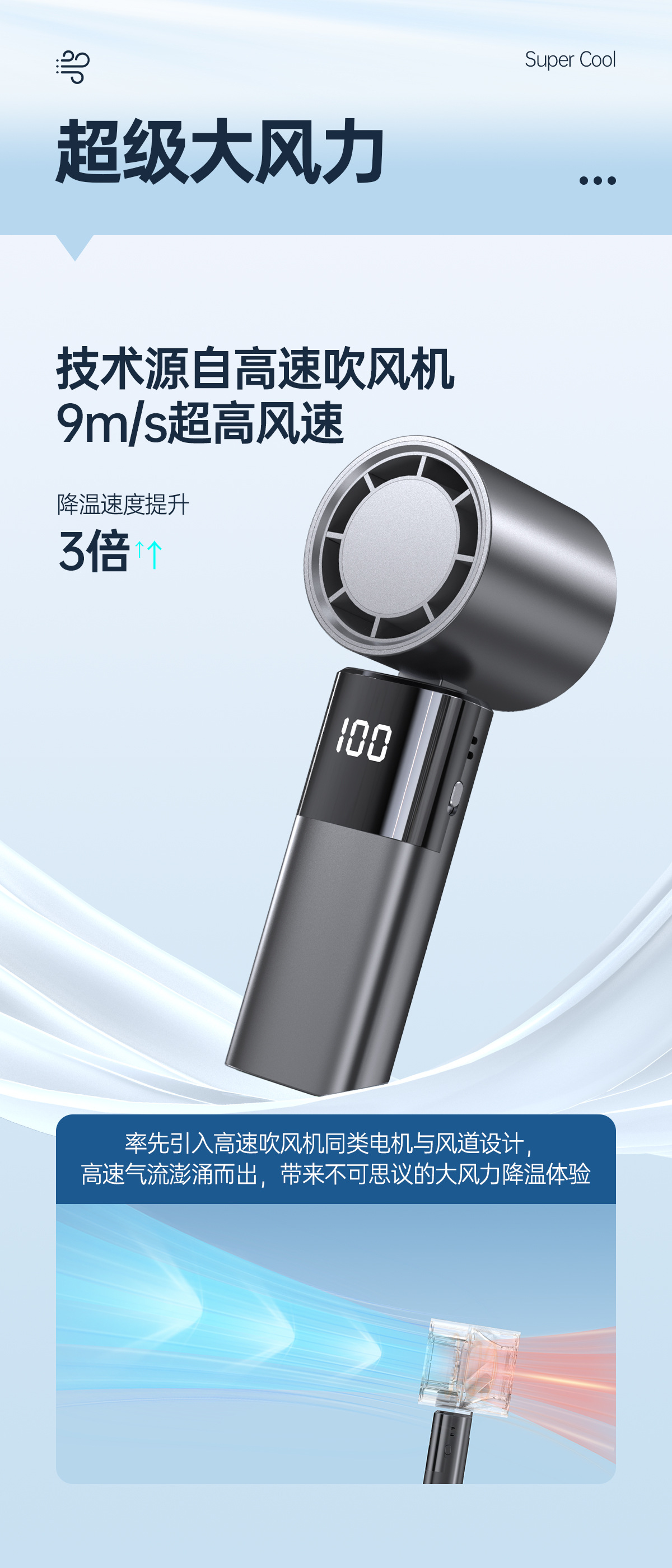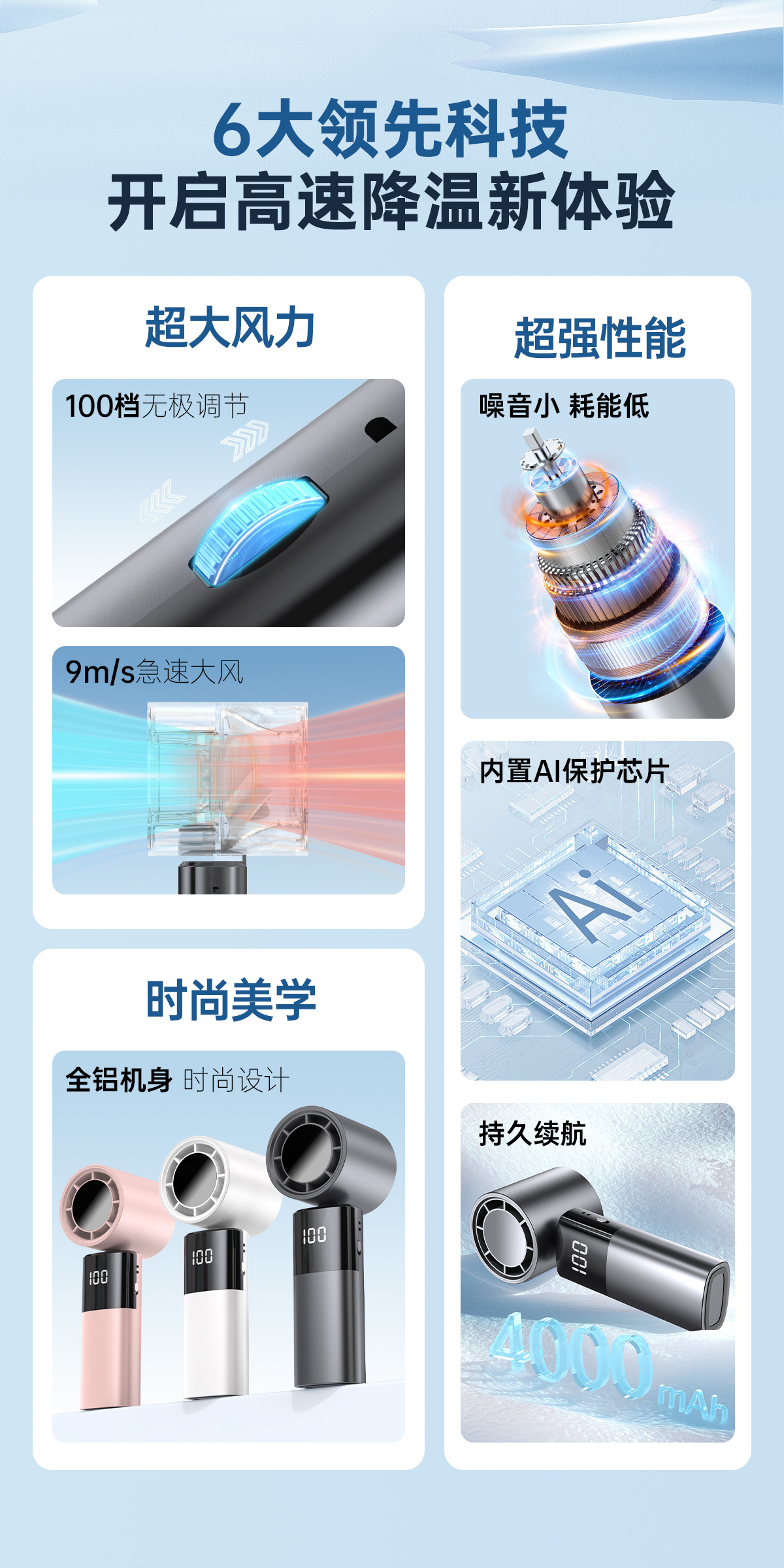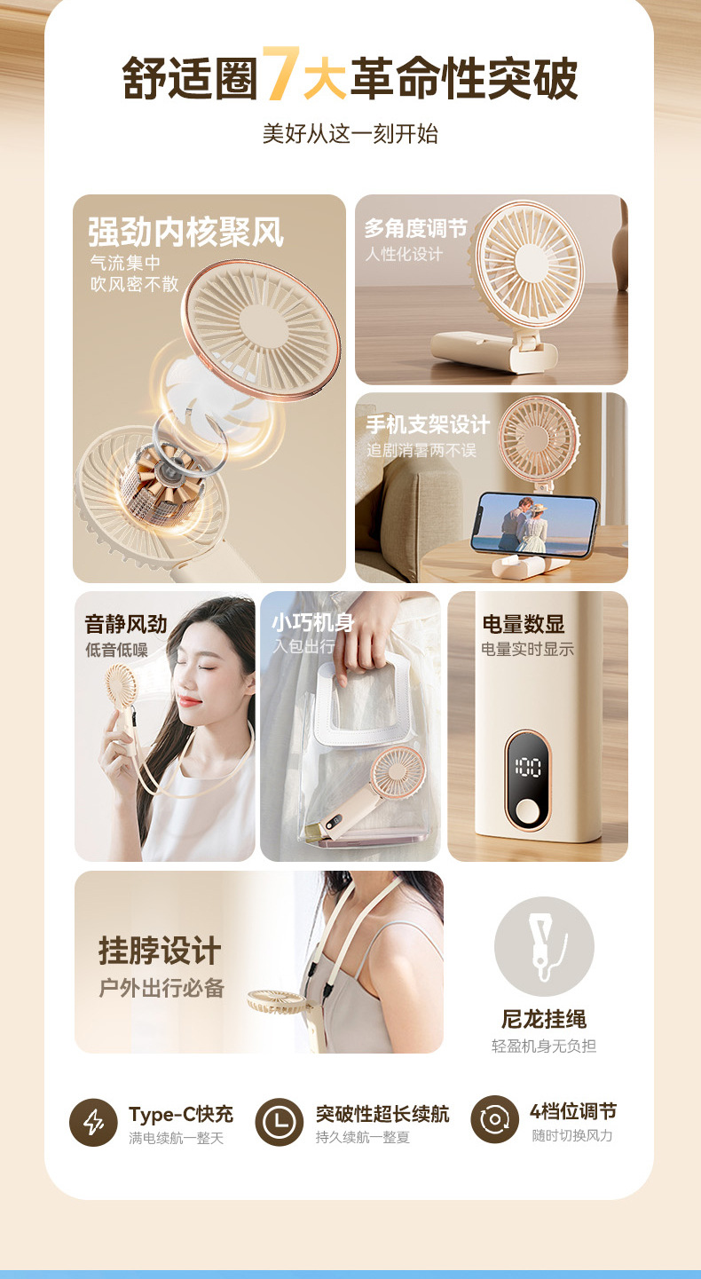 迷你手持风扇 usb充电折叠冰敷风扇数显桌面挂脖可充电办公室风扇