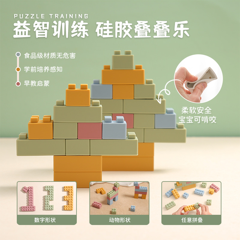 어린이용 실리콘 교육용 장난감 테트리스 아기 DIY 색상 인식 쌓기 블록 조립스토어 가기