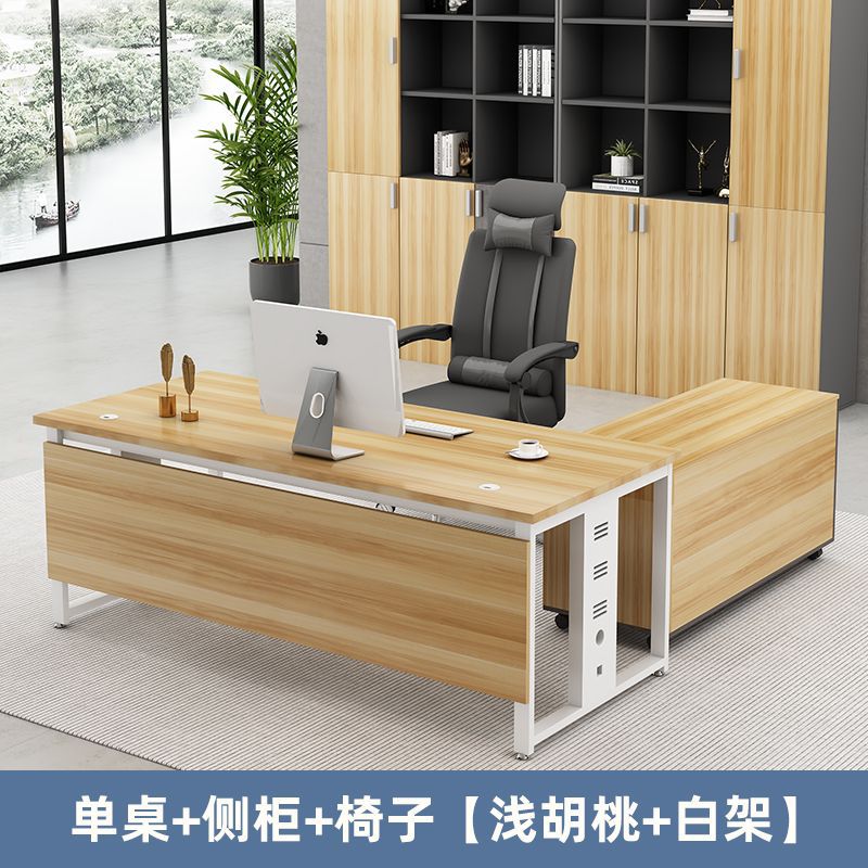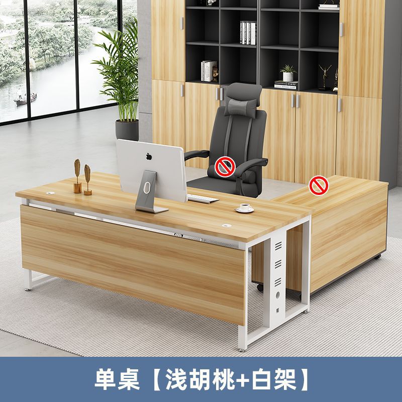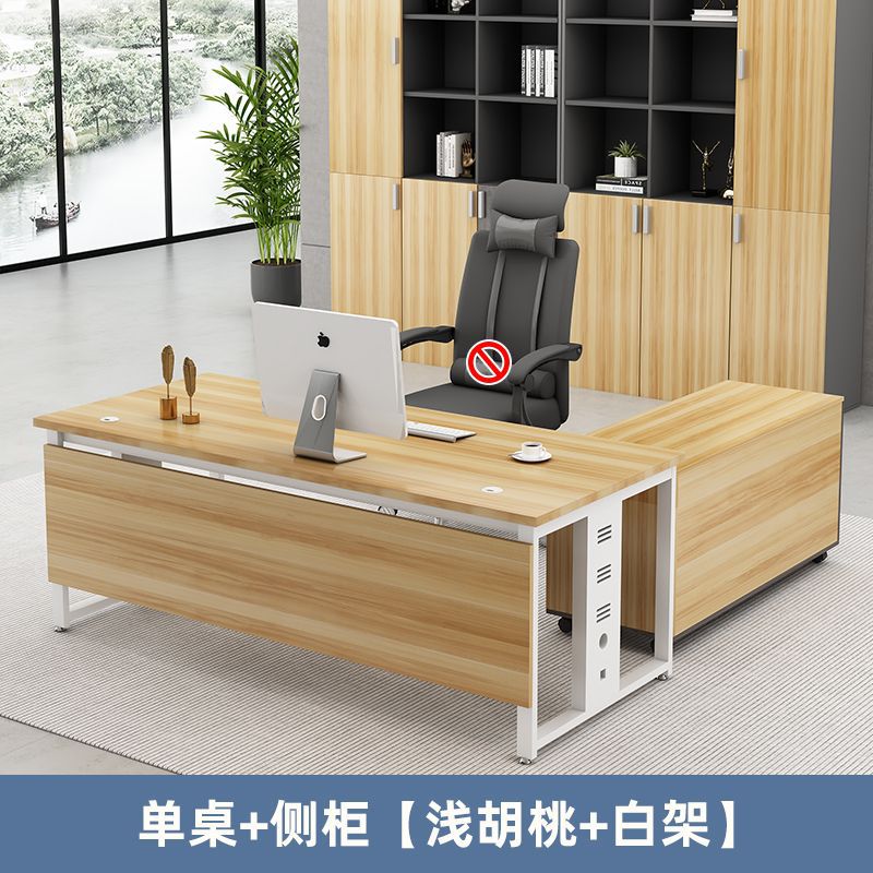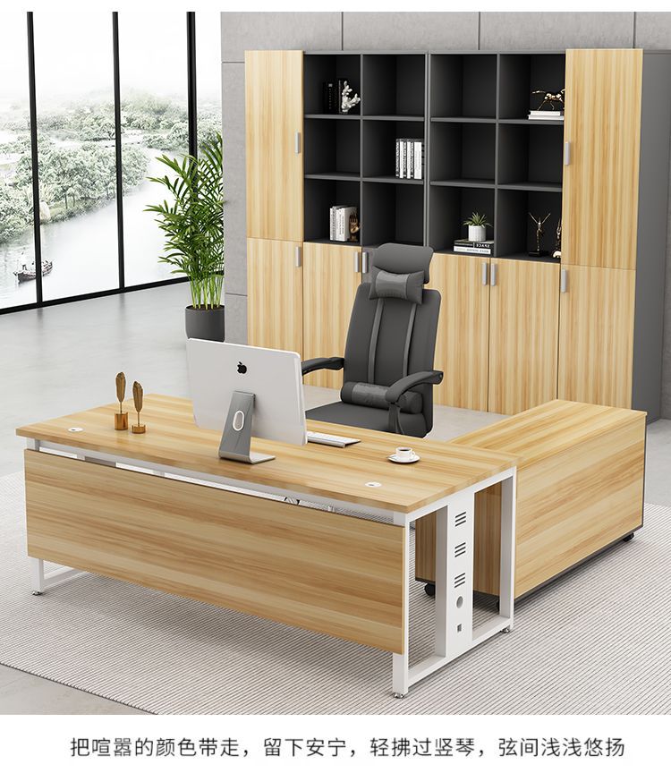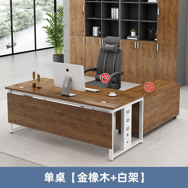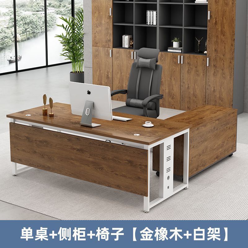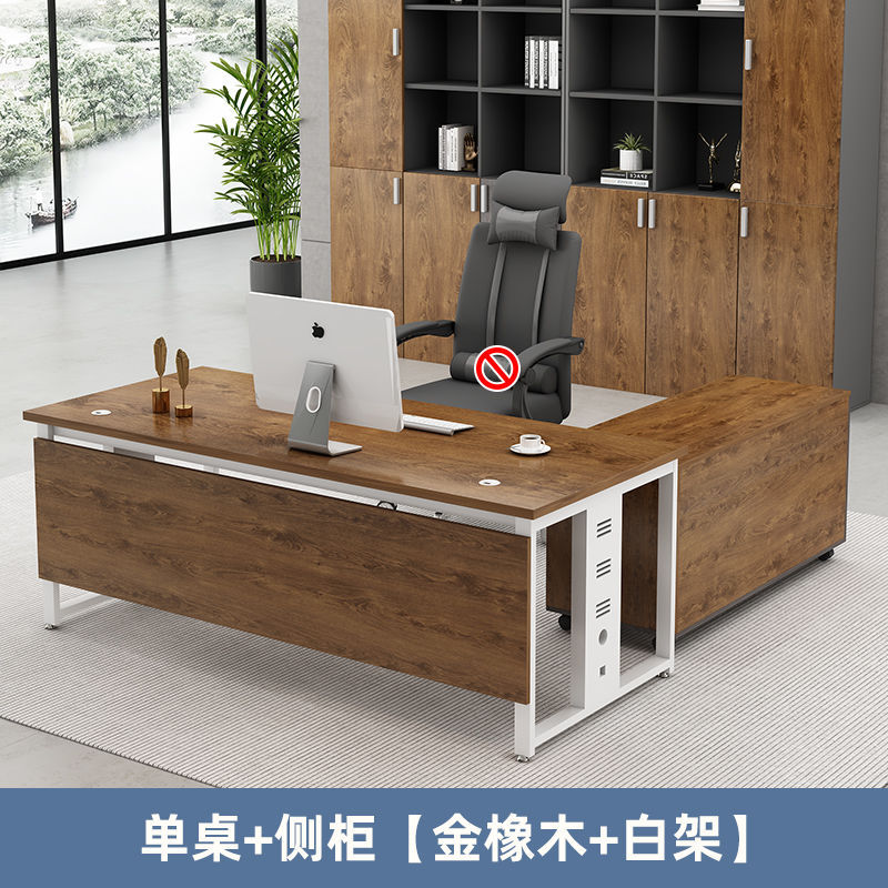 • SKU43_color (골드 오크 데스크탑 화이트 프레임 [활성])_ 스타일 (180_80cm 잠금 보스 의자가있는 단일 테이블 사이드 캐비닛)