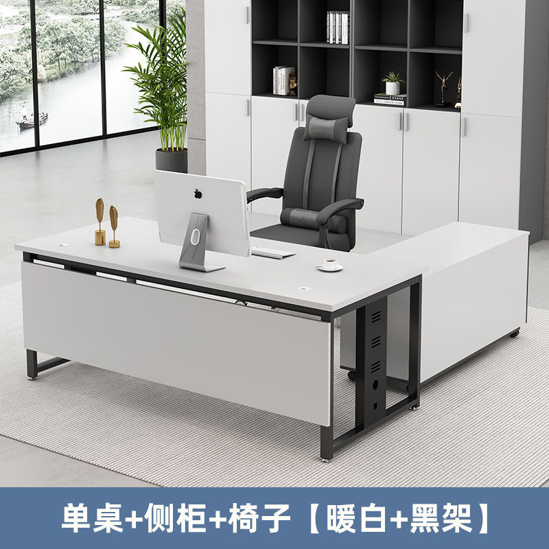 • SKU148_color (따뜻한 흰색 데스크탑 블랙 랙 [활성])_ 스타일 (120 _ 80cm 잠금 보스 의자가있는 단일 테이블 사이드 캐비닛)