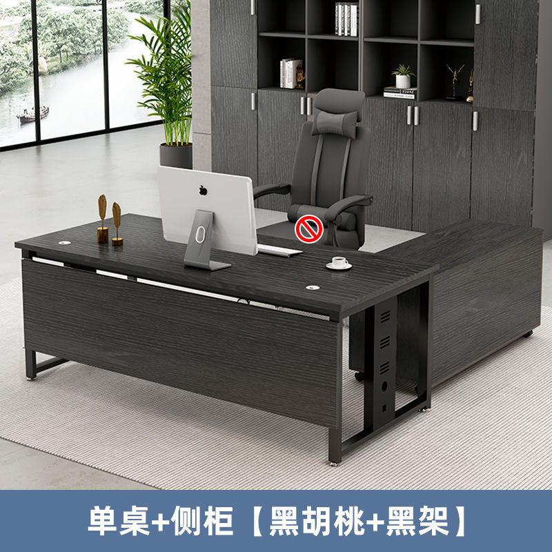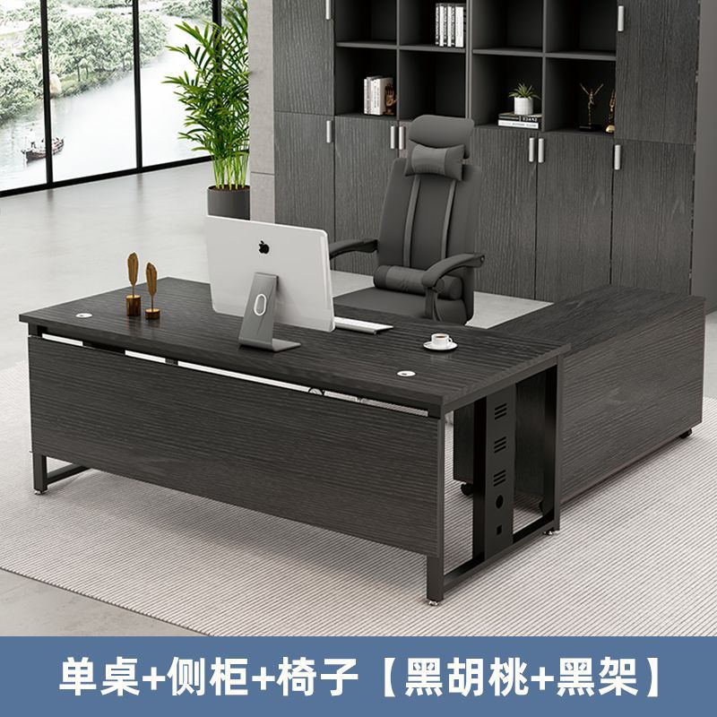 • SKU192_color (블랙 호두 데스크탑 블랙 랙 [활성])_ 스타일 (120_80cm 잠금 보스 의자가있는 단일 테이블 사이드 캐비닛)