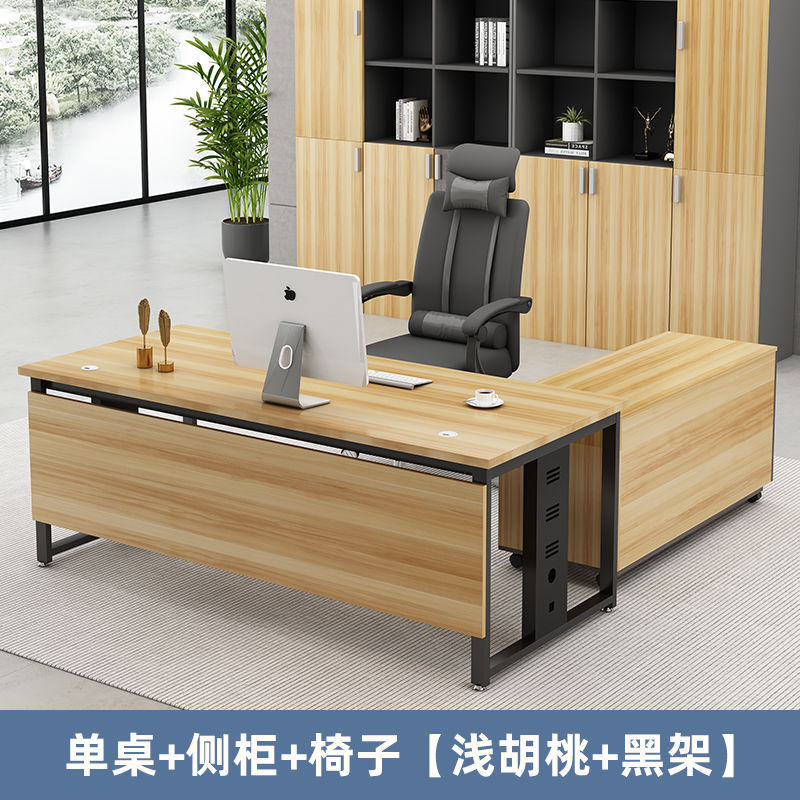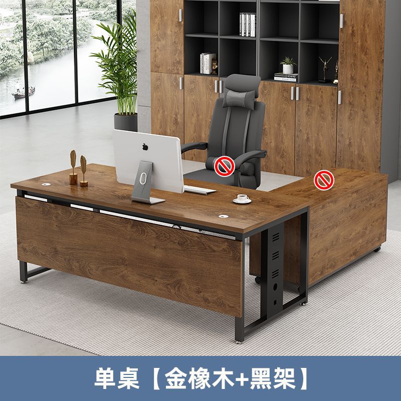 • SKU20_Color (골드 오크 데스크탑 블랙 프레임 [활성])_ 스타일 (160_80cm 잠금 보스 의자가있는 싱글 테이블 사이드 캐비닛)