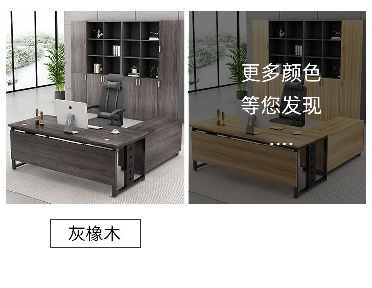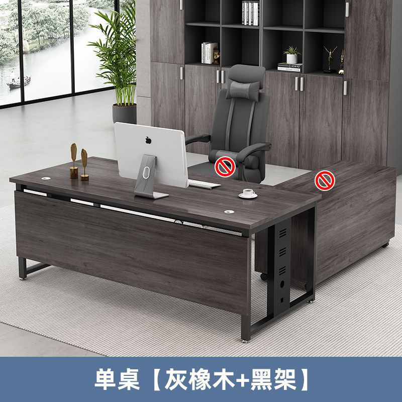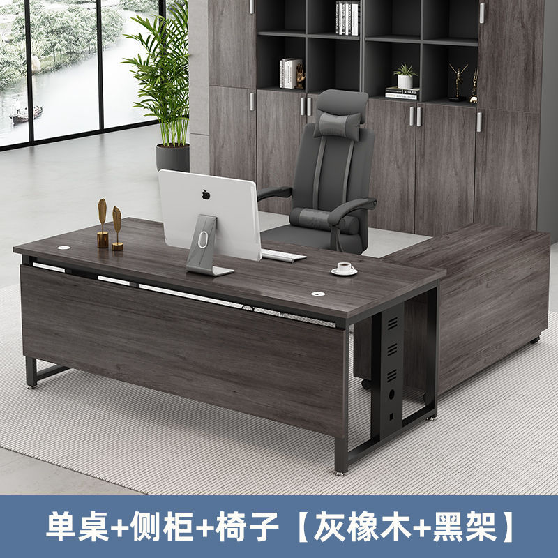 • SKU109_color (회색 오크 데스크탑 블랙 프레임 [활성])_ 스타일 (180_80cm 잠금 보스 의자가있는 단일 테이블 사이드 캐비닛)