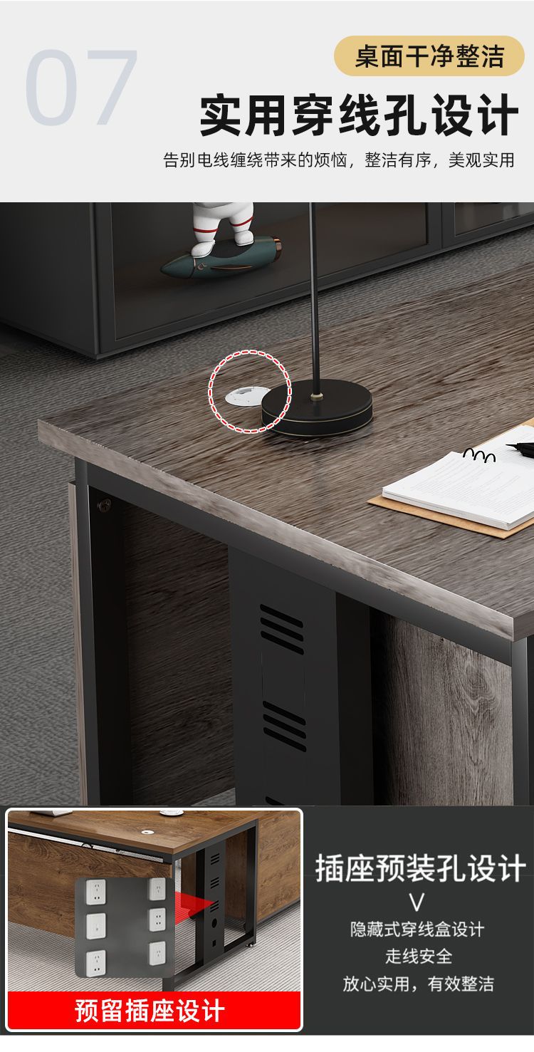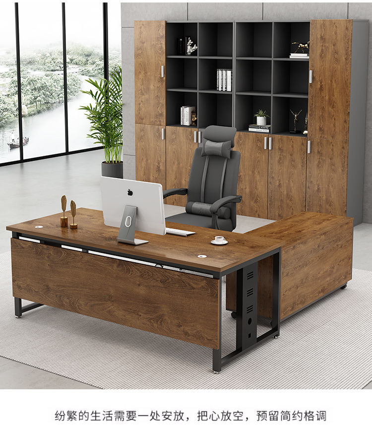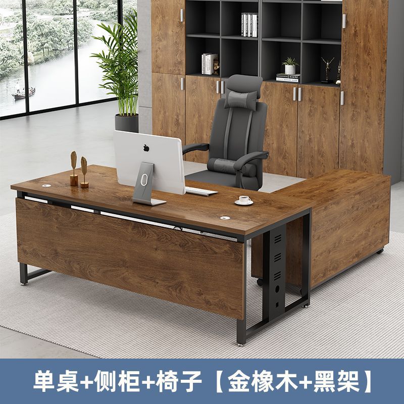 • SKU16_Color (골드 오크 데스크탑 블랙 프레임 [활성])_ 스타일 (120_80cm 잠금 보스 의자가있는 싱글 테이블 사이드 캐비닛)
