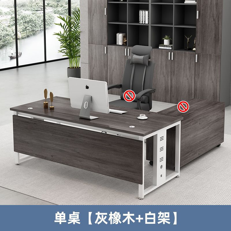 • SKU131_color (회색 오크 데스크탑 화이트 프레임 [활성])_ 스타일 (180_80cm 잠금 보스 의자가있는 단일 테이블 사이드 캐비닛)