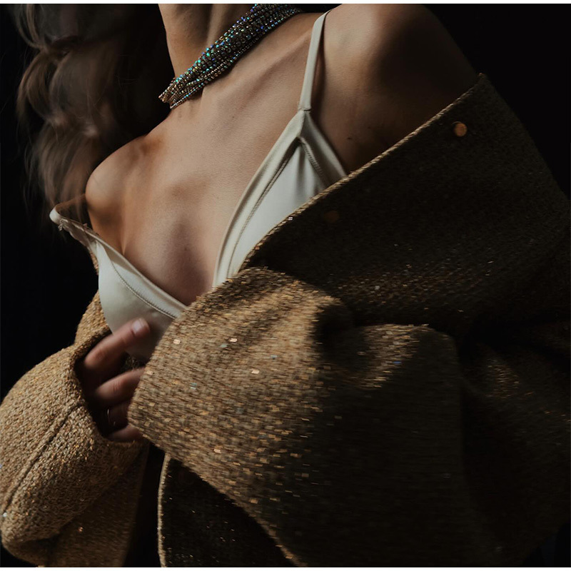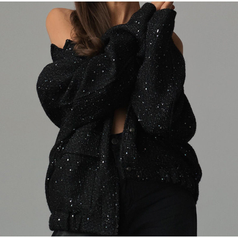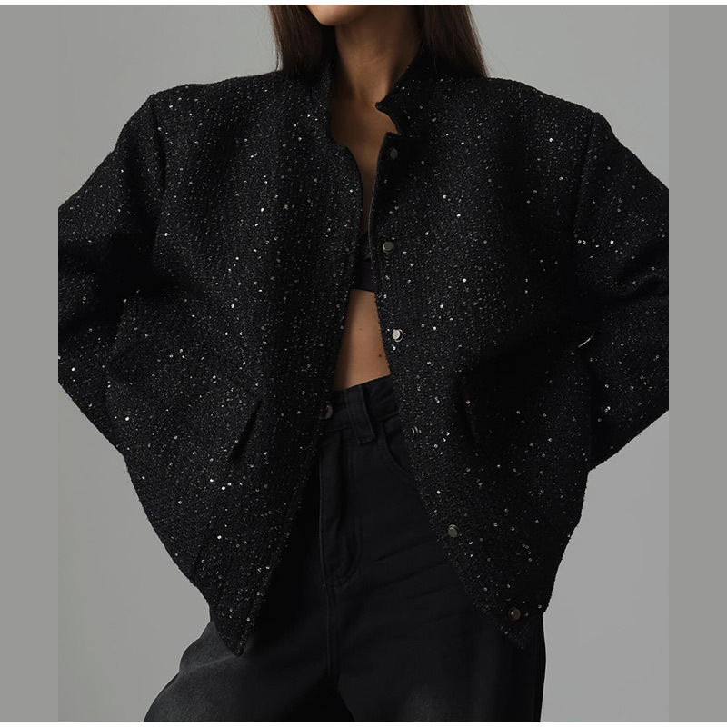 국경 간 전자 상거래 여성의 검은 폭발 느슨한 레저 통근 거리 코트 유럽과 미국 편안한 눈길을 끄는