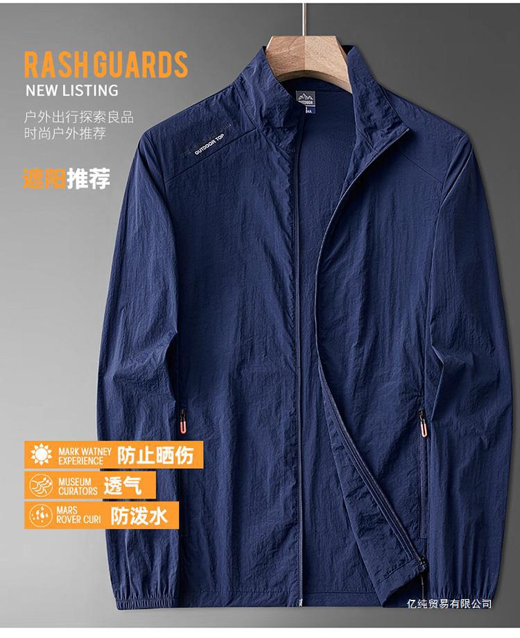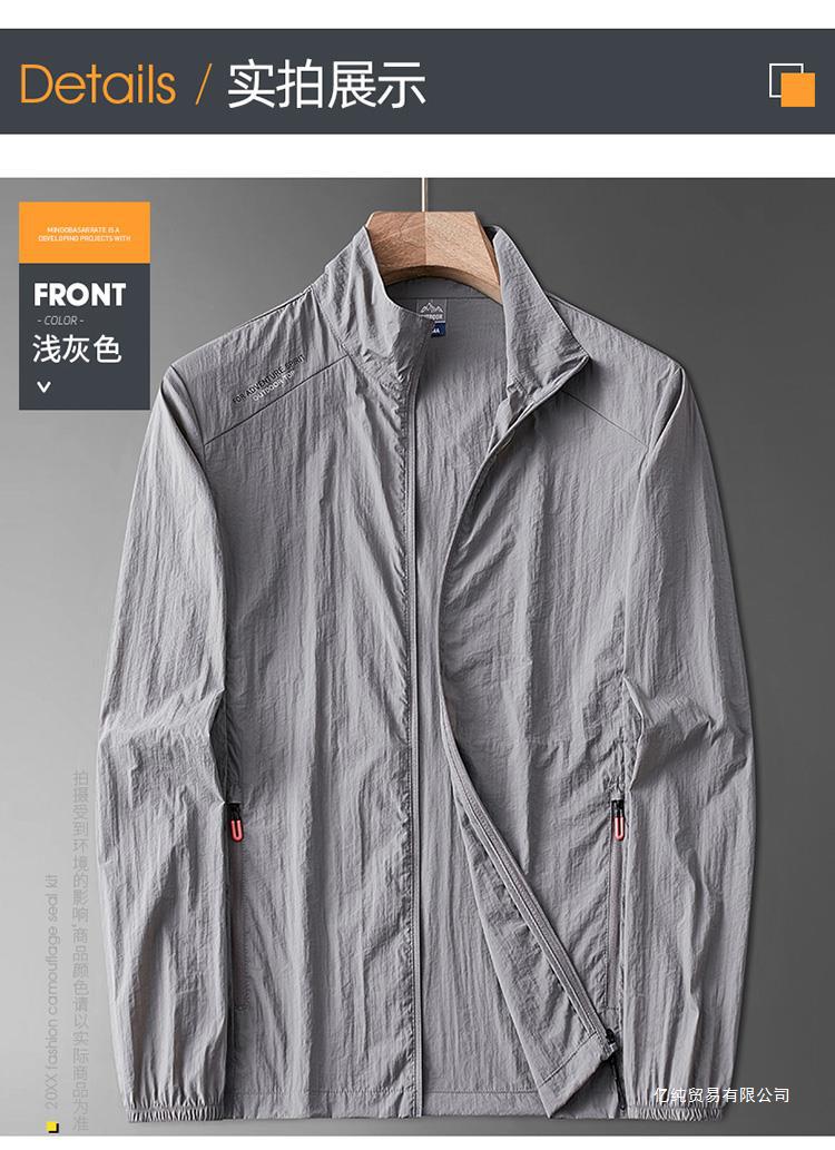 공장 직접 여름 태양 보호 의류 남성 스탠드 칼라 야외 스포츠 UV 보호 피부 의류 낚시 의류 라이트 탑스토어 가기