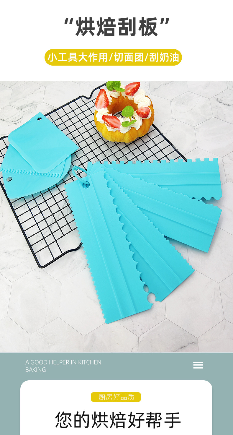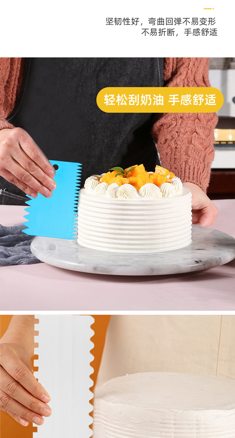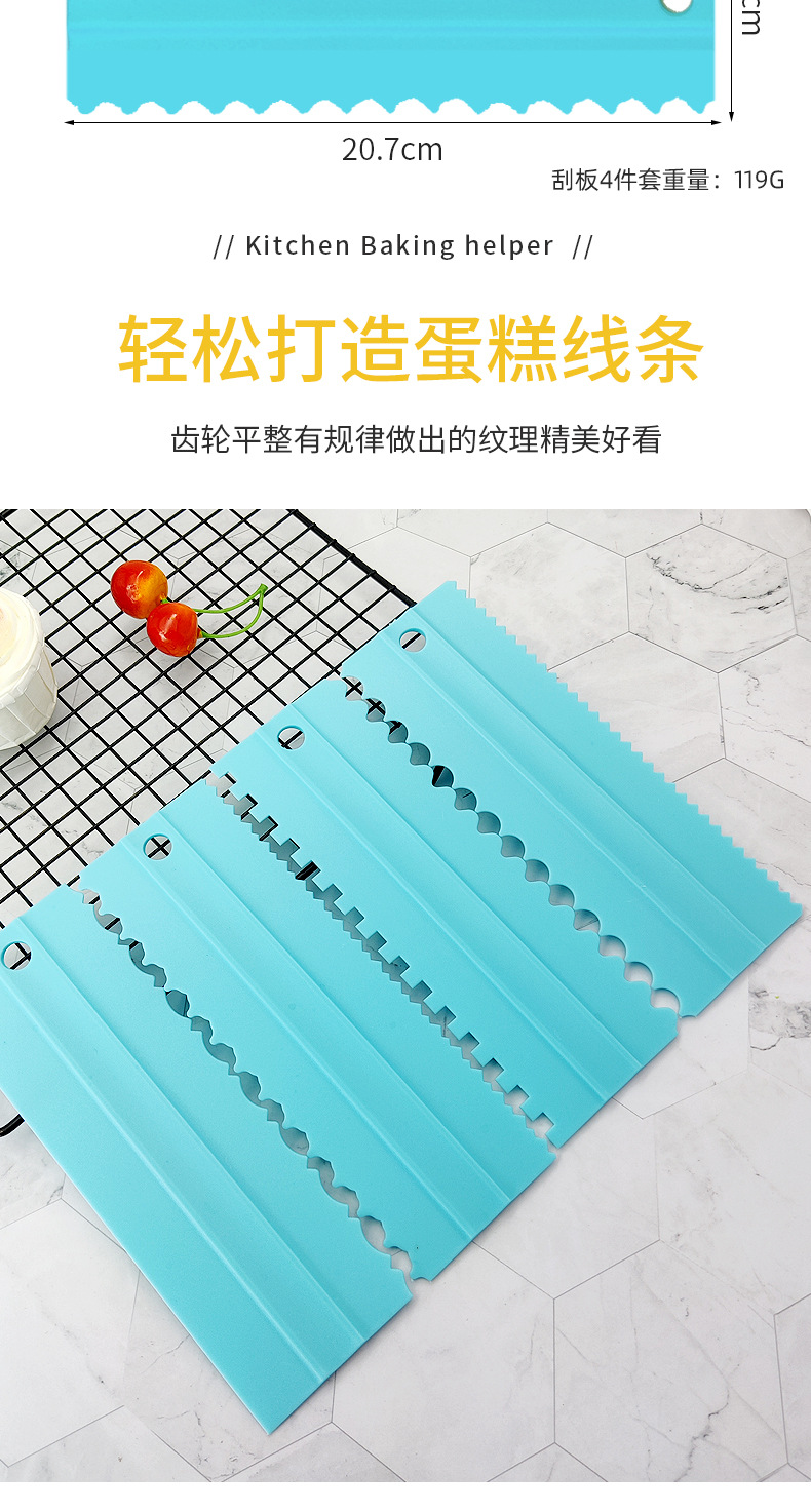 재고 플라스틱 크림 스크레이퍼 4 개 세트 플라스틱 크림 양면 치아 스크레이퍼 케이크 스크레이퍼 빗 베이킹 도구