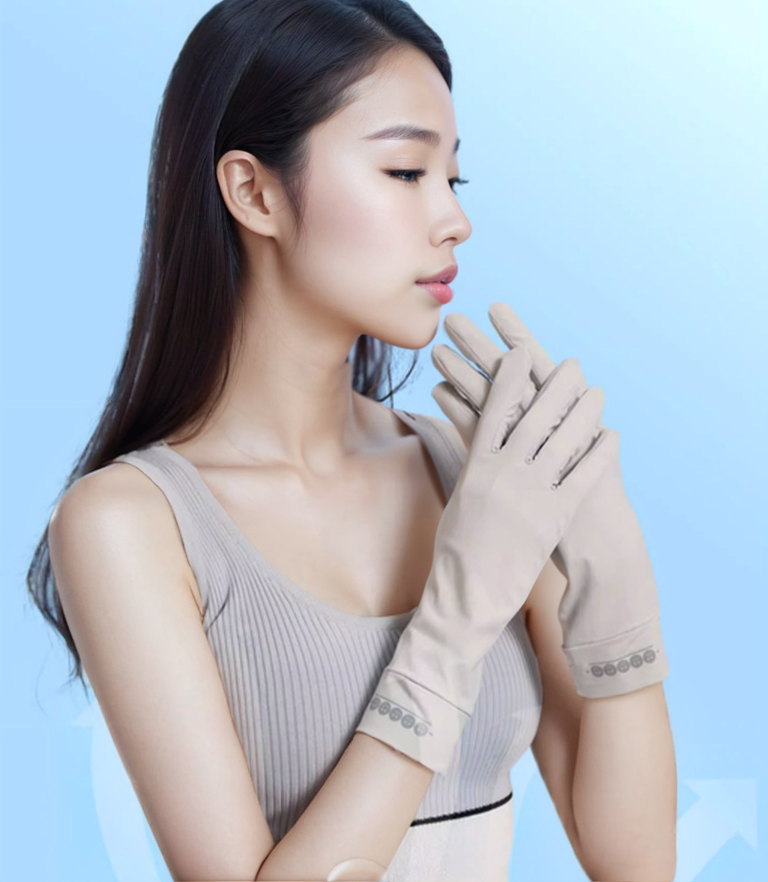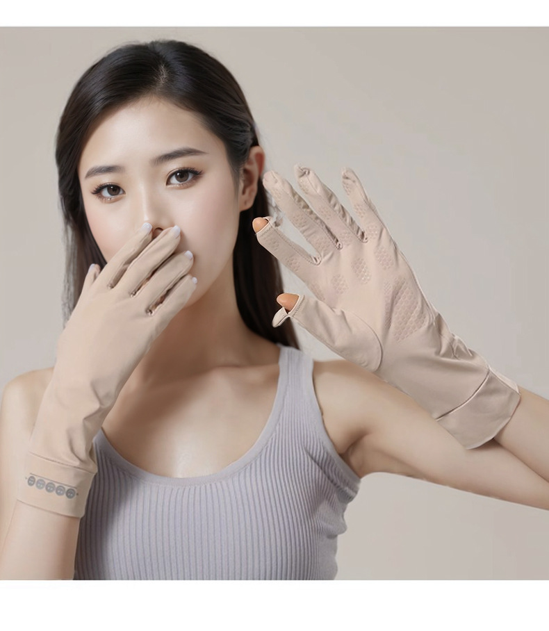 선 스크린 장갑 여성 여름 야외 스포츠 사이클링 쿨 센스 얇은 미끄럼 손가락 누설 아이스 실크 장갑 UV 보호