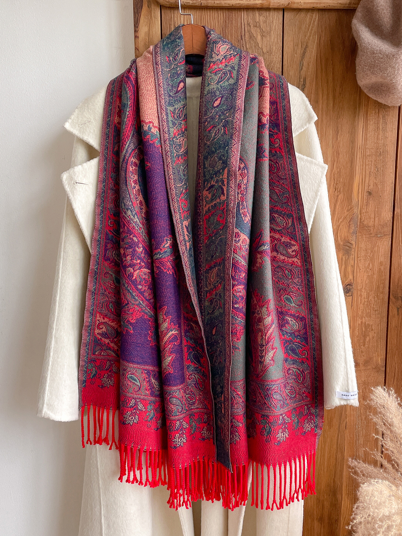 새로운 양면 가을과 겨울 모방 캐시미어 새로운 민족 스타일 목도리 두꺼운 따뜻한 술 스카프 꽃 우아한 스카프스토어 가기