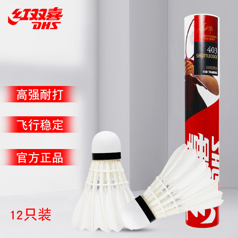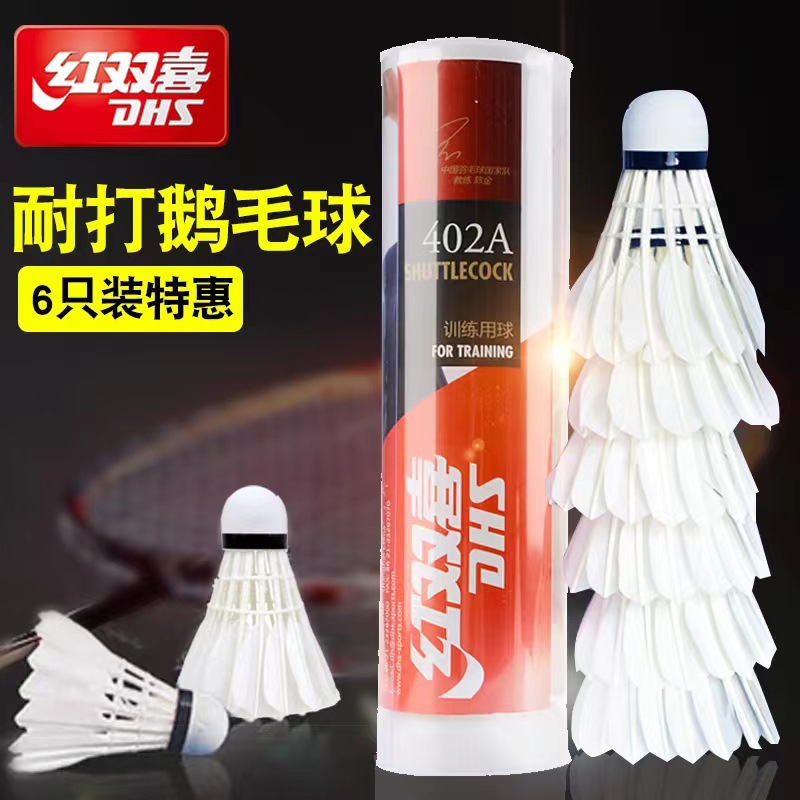 레드 더블 행복 배드민턴 도매 실내 및 실외 내구성 6 12 복합 볼 헤드 배드민턴 거위 모피 볼스토어 가기