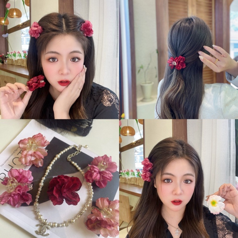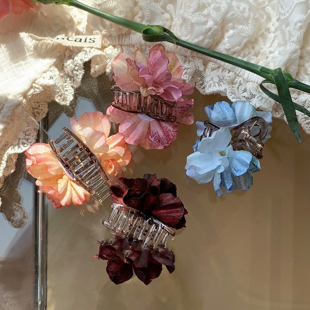 마른 장미 꽃 클립 스몰 사이즈 해변 앞머리 클립 복고풍 공주 헤어 클립 반 머리 상어 클립 사이드 클립 여성스토어 가기