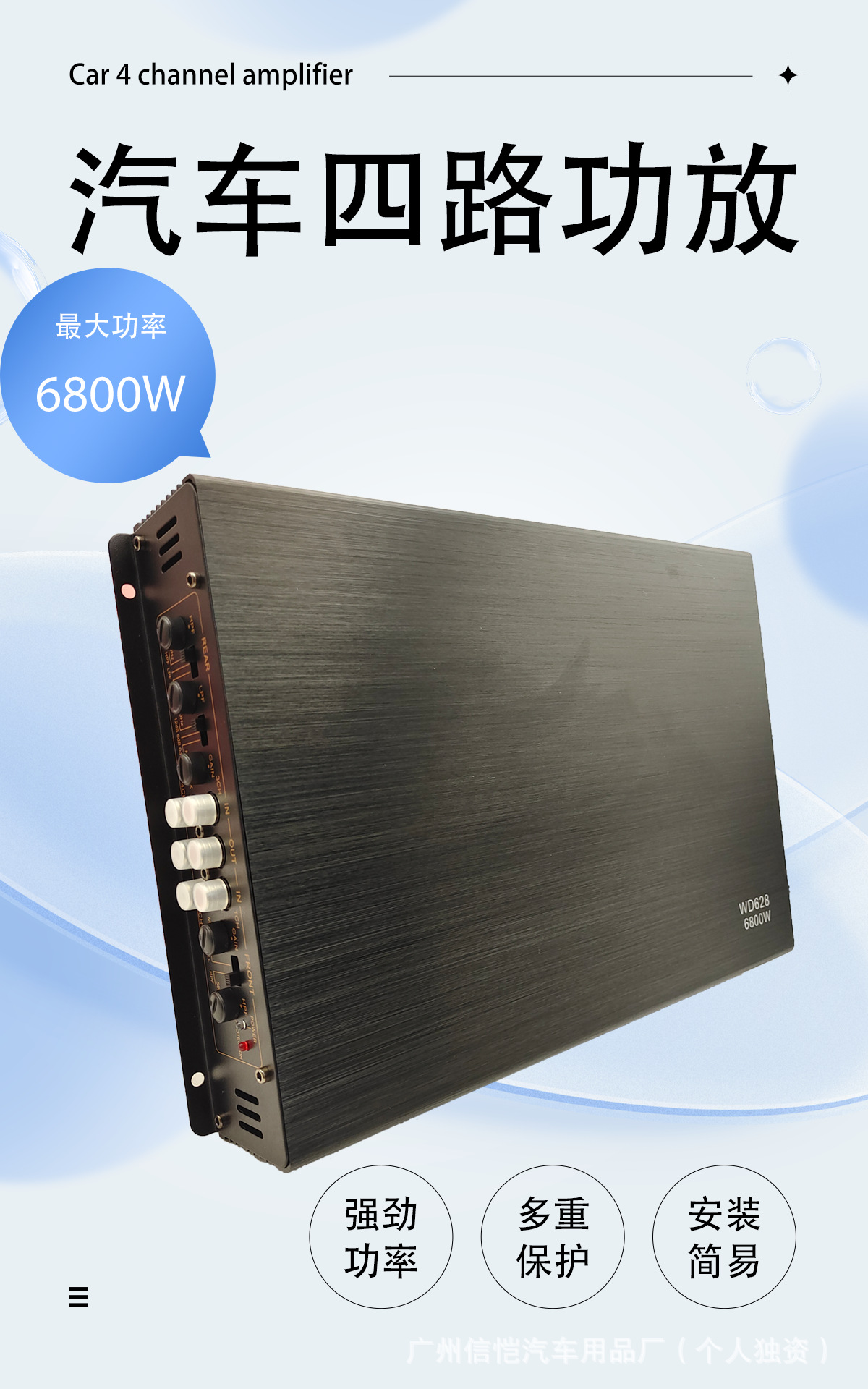 공장 직접 판매 WD628 자동차 전력 증폭기 4 채널 고출력 자동차 오디오 수정 전력 증폭기