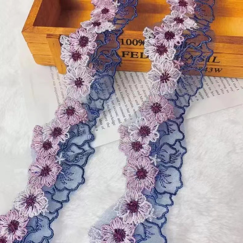새로운 재고 메쉬 자수 폴리에스테르 레이스 다색 레이스 엣지 장식 의류 청삼 액세서리