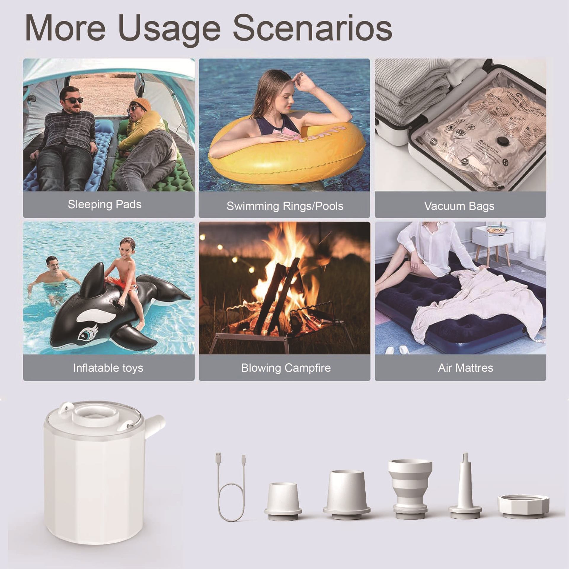 Scope of application:Inflatable mattress, inflatable pillow, swimming ring, vacuum bag storage, tent light, emergency SOS light
