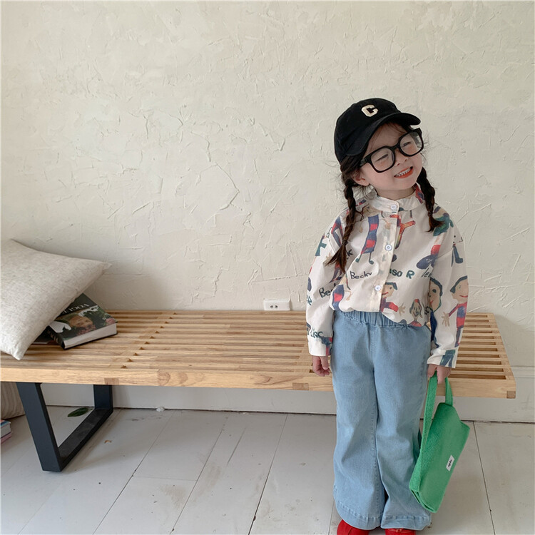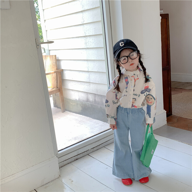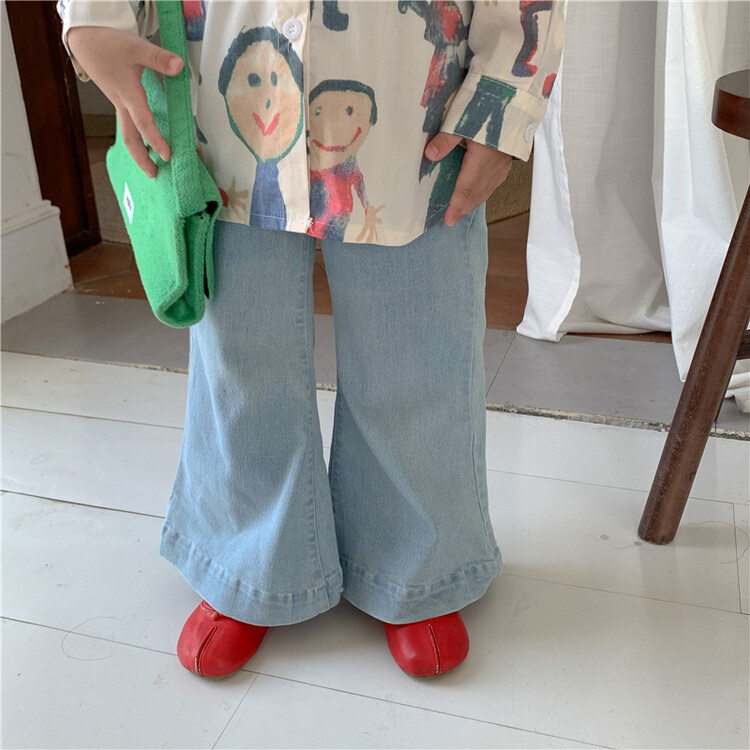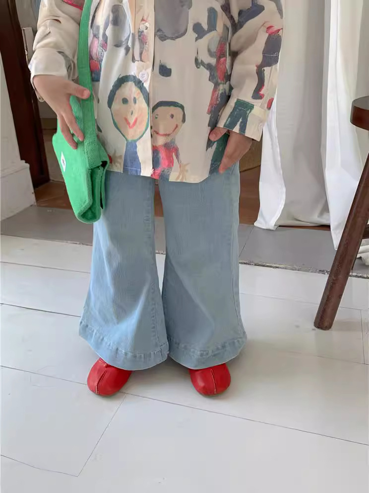 소녀 청바지 2024 봄과 여름 새로운 도착 아기 소녀의 유행 바지 한국 스타일 소녀의 데님 꽃 무늬 바지스토어 가기