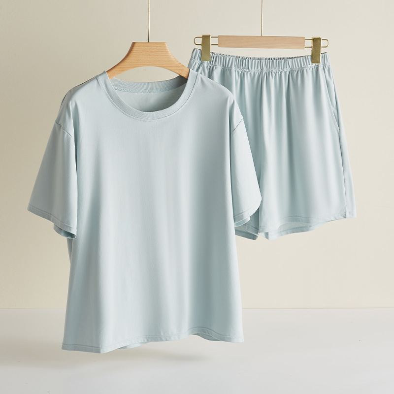 쿨 솔로 나 여름 잠옷 여성용 얇은 느슨한 반팔 아웃웨어 통기성 커플 홈 의류 남성 세트스토어 가기