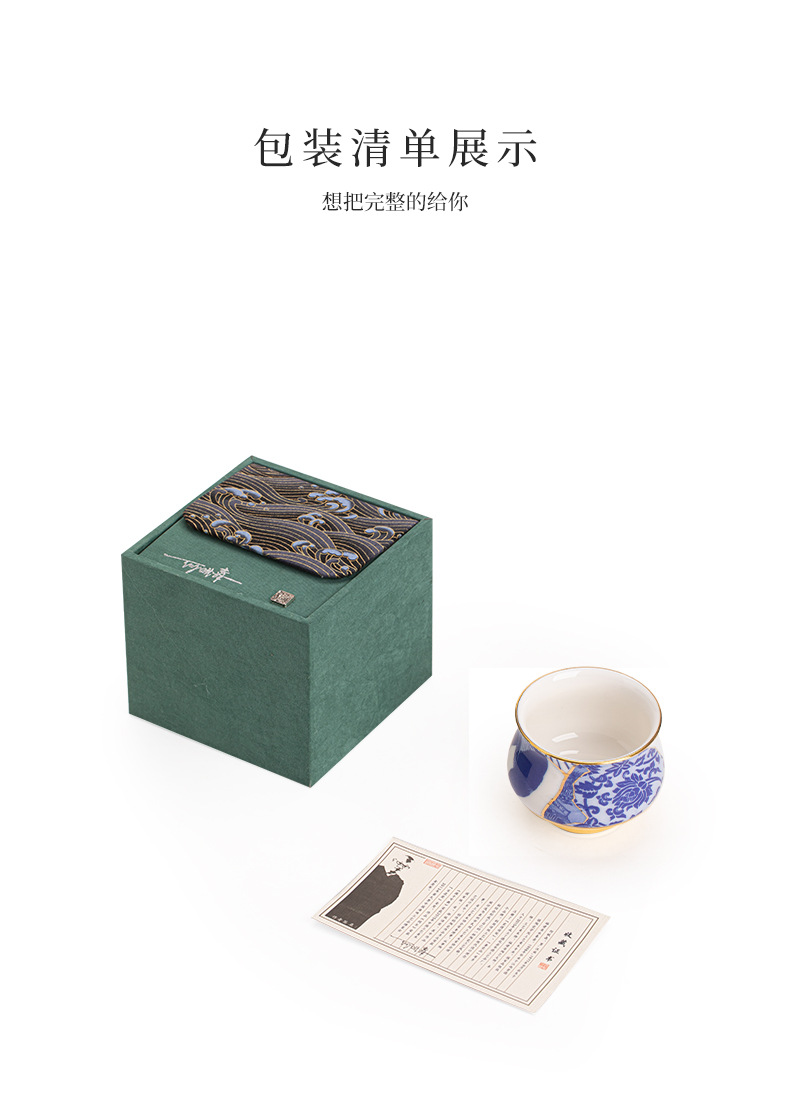 Dehua 차 세트 파란색과 흰색 손으로 그린 도자기 타이어 금도금 티 컵 마스터 컵 차 시음 컵 쿵푸 차 세트 개인 선물 상자스토어 가기