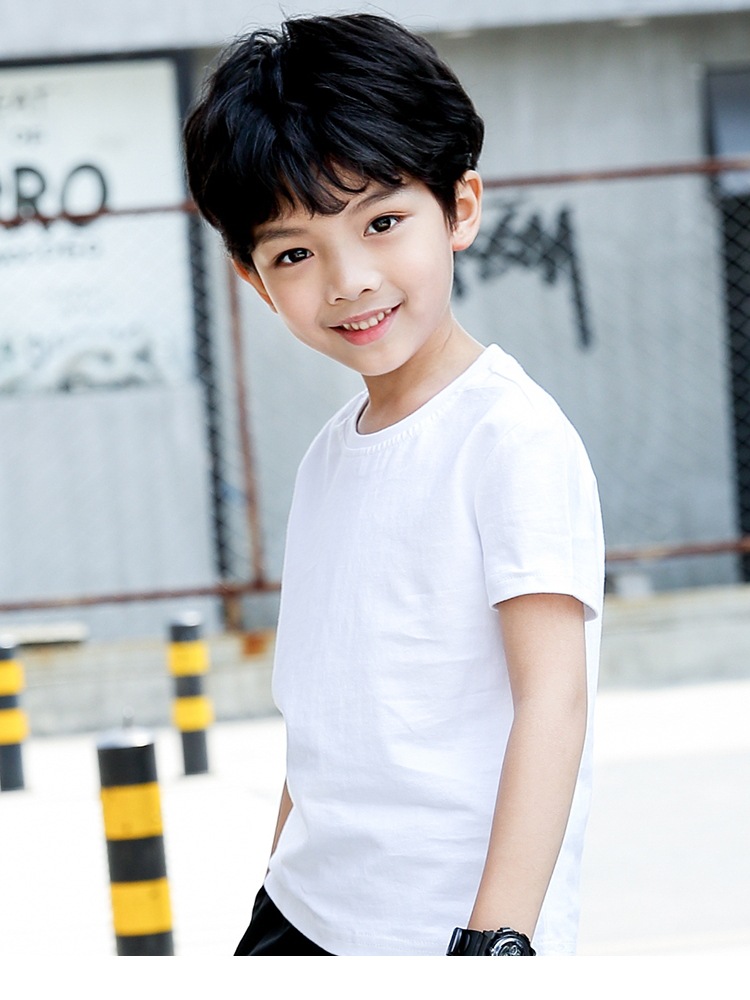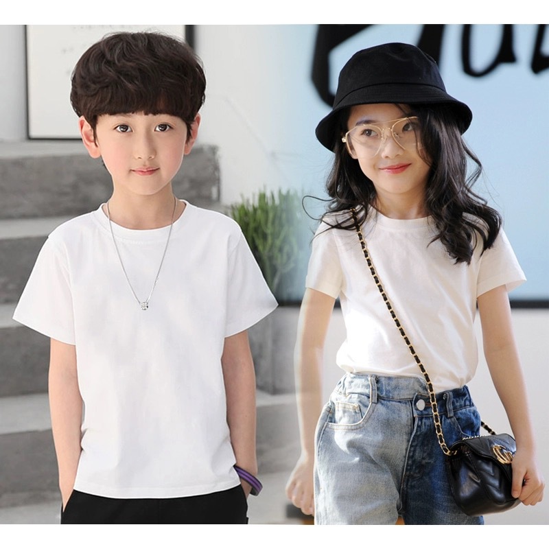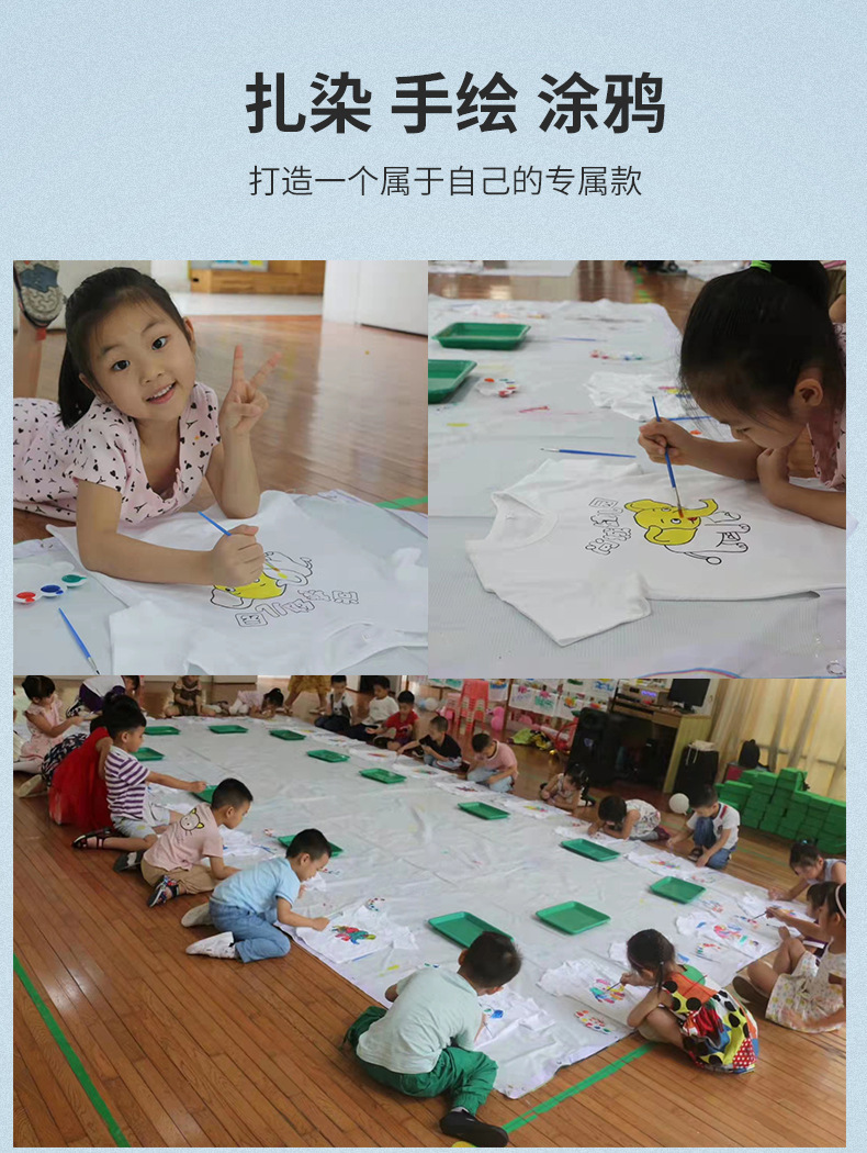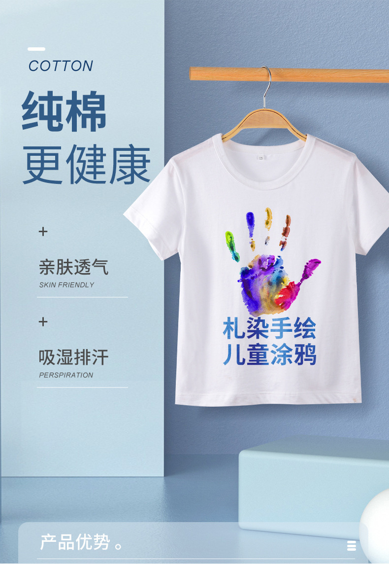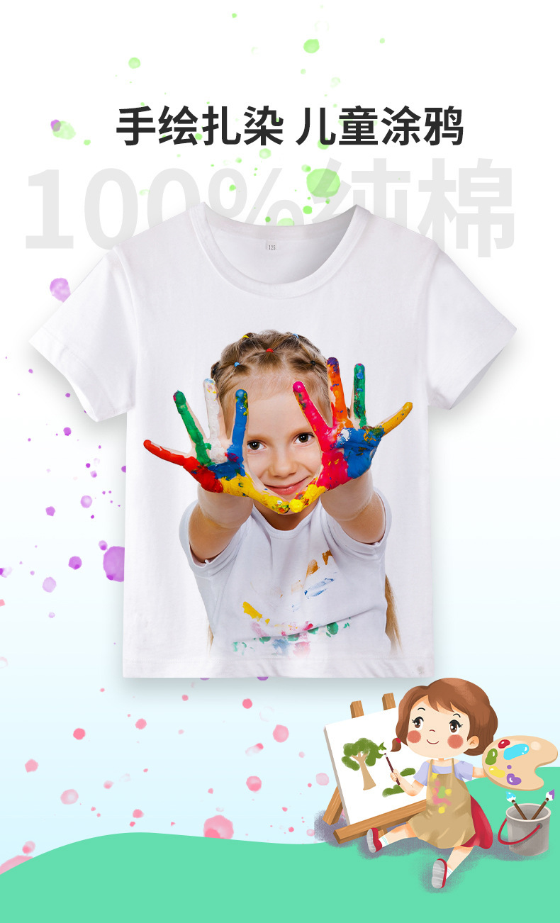 어린이 퓨어 코튼 티셔츠 걸스 올 매치 화이트 톱 보이즈 솔리드 컬러 반팔 넥타이-염료 손으로 그린 맞춤형 클래스 의류스토어 가기