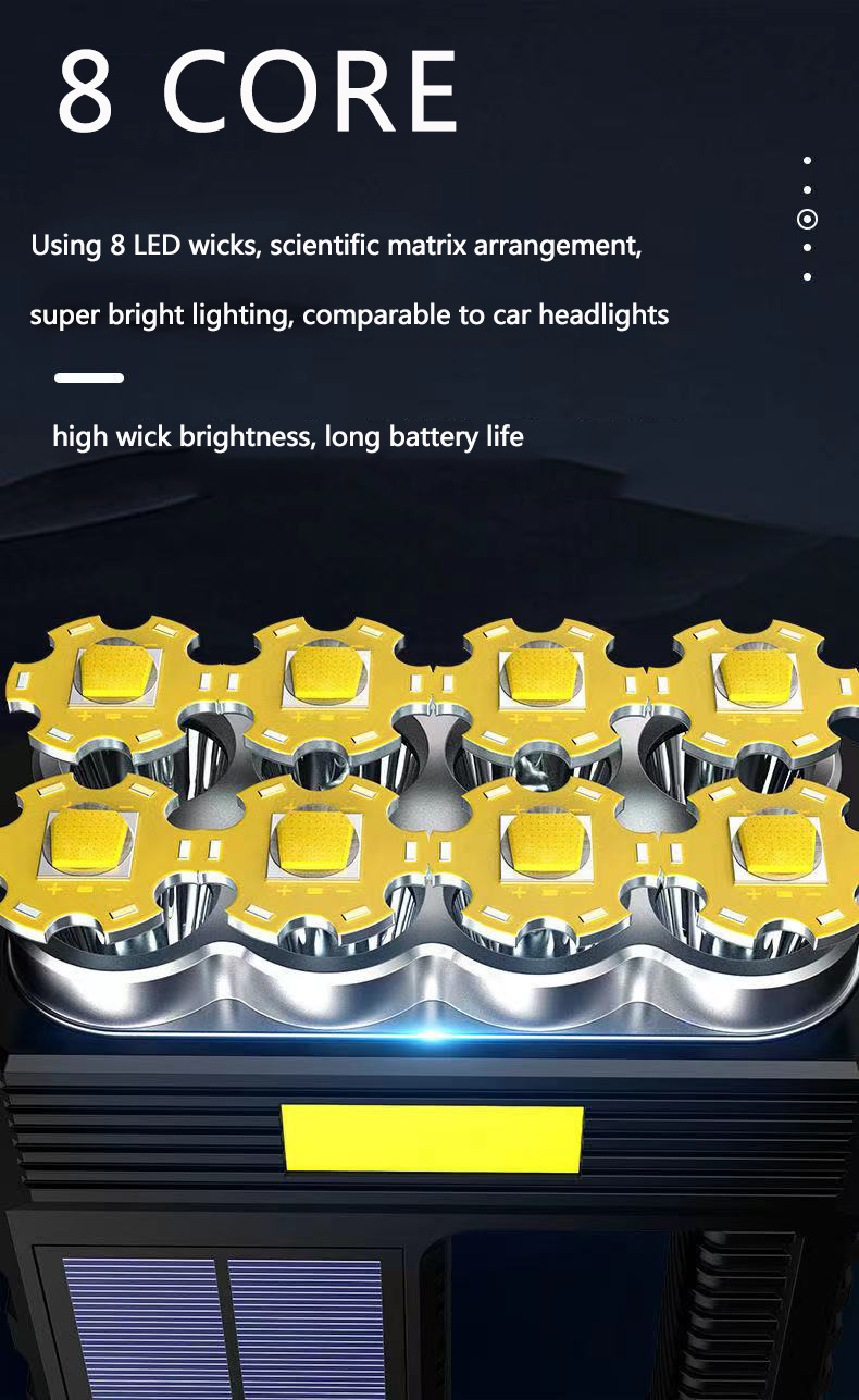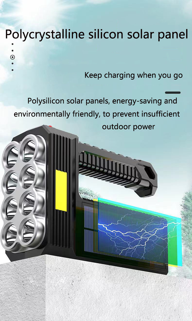 LED 태양열 손전등 야외 충전 휴대용 강한 빛 슈퍼 밝은 COB 작업 조명 긴 수명 휴대용 조명
