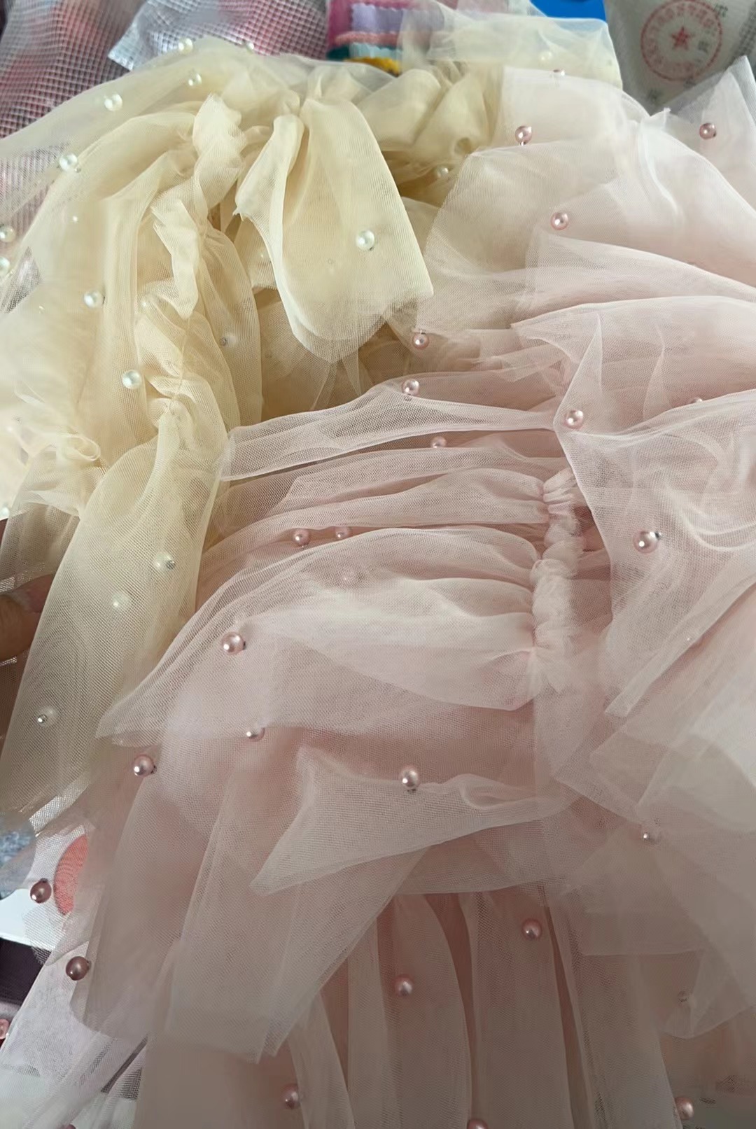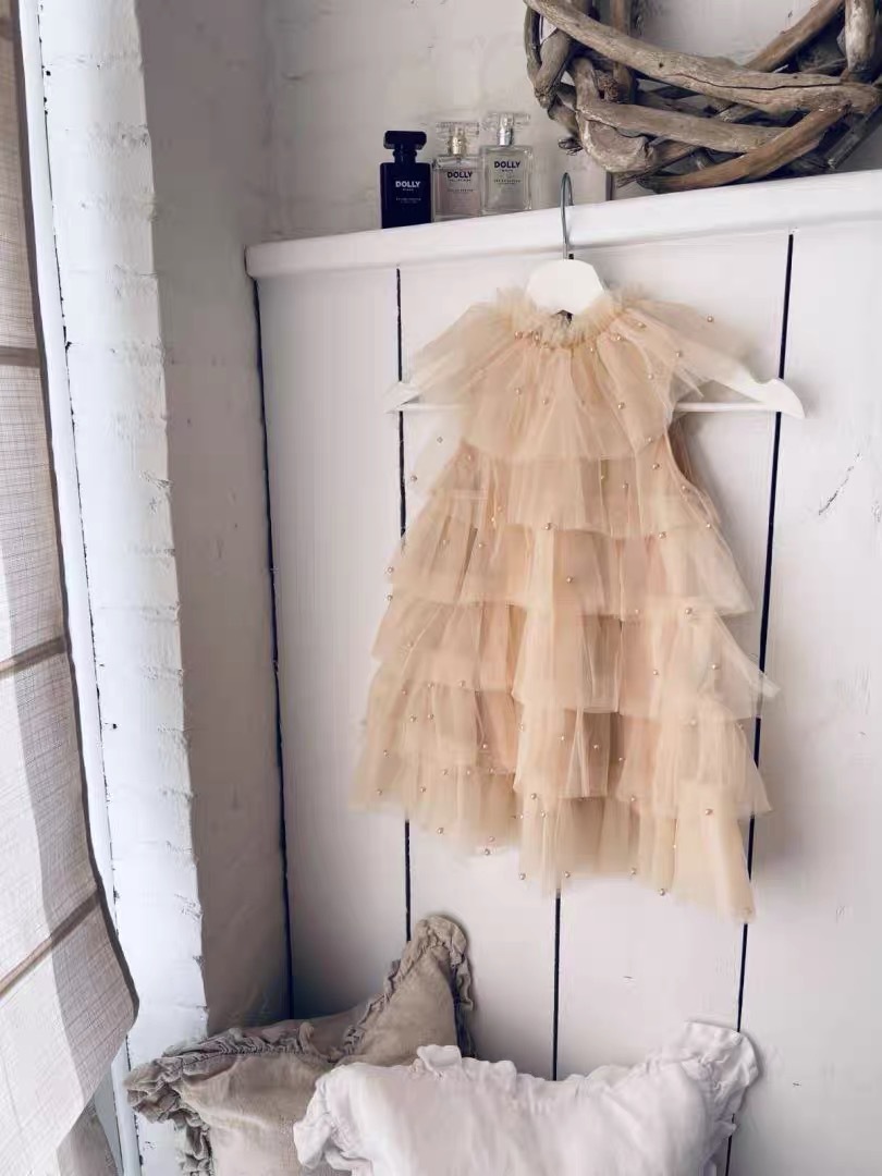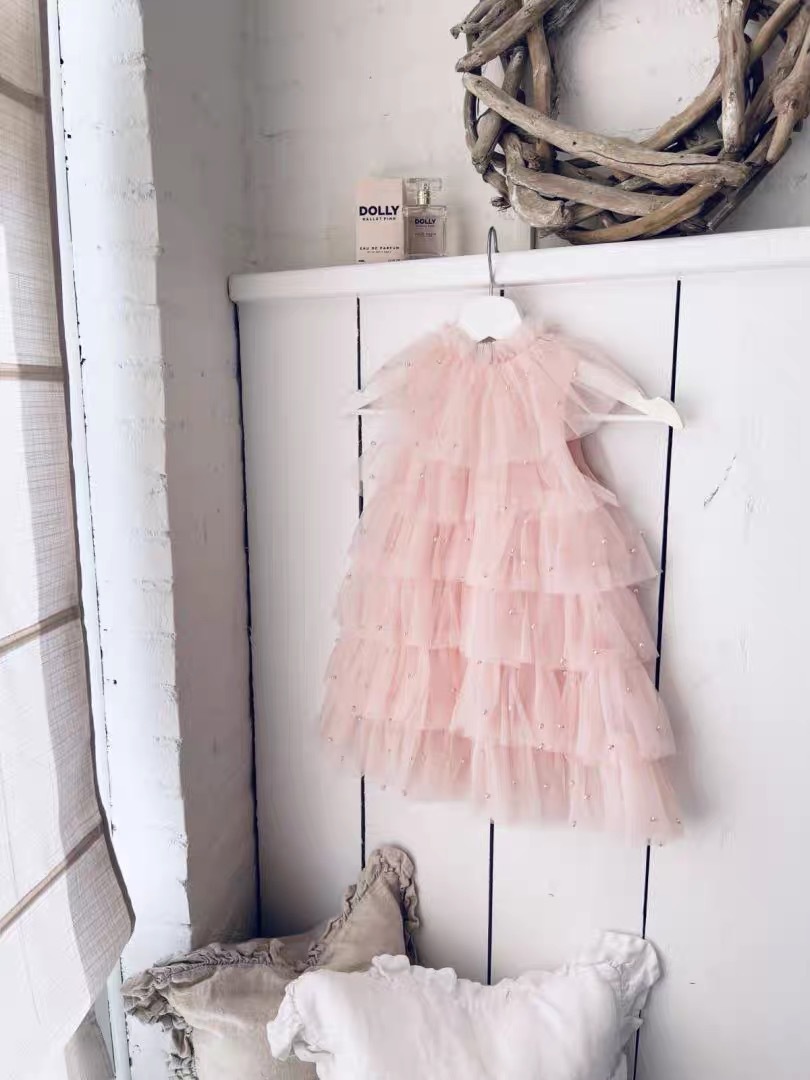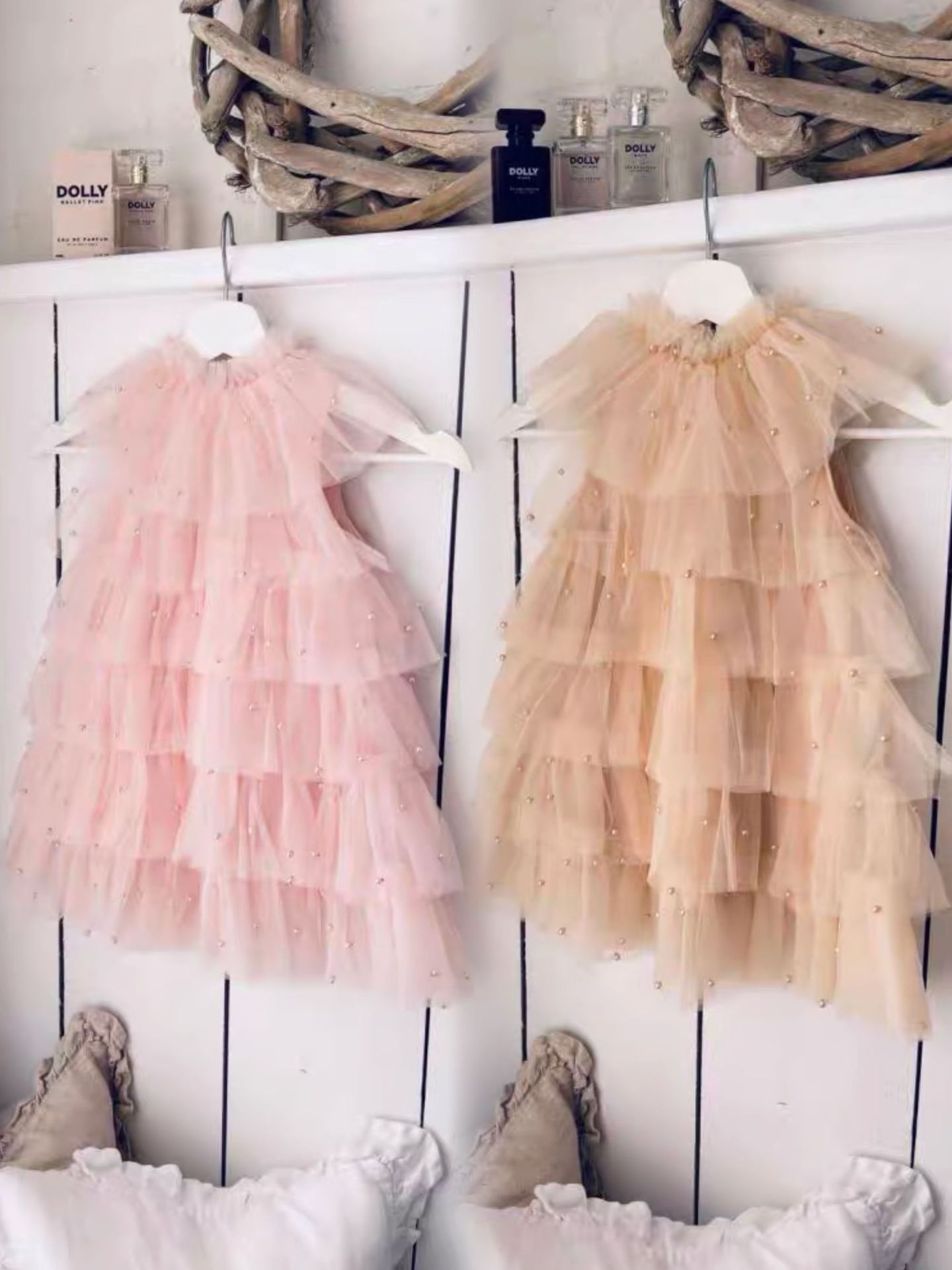 24 여름 새로운 소녀 원피스 슈퍼 소프트 메쉬 투투 스커트 진주 퍼프 케이크 스커트 조끼 원피스