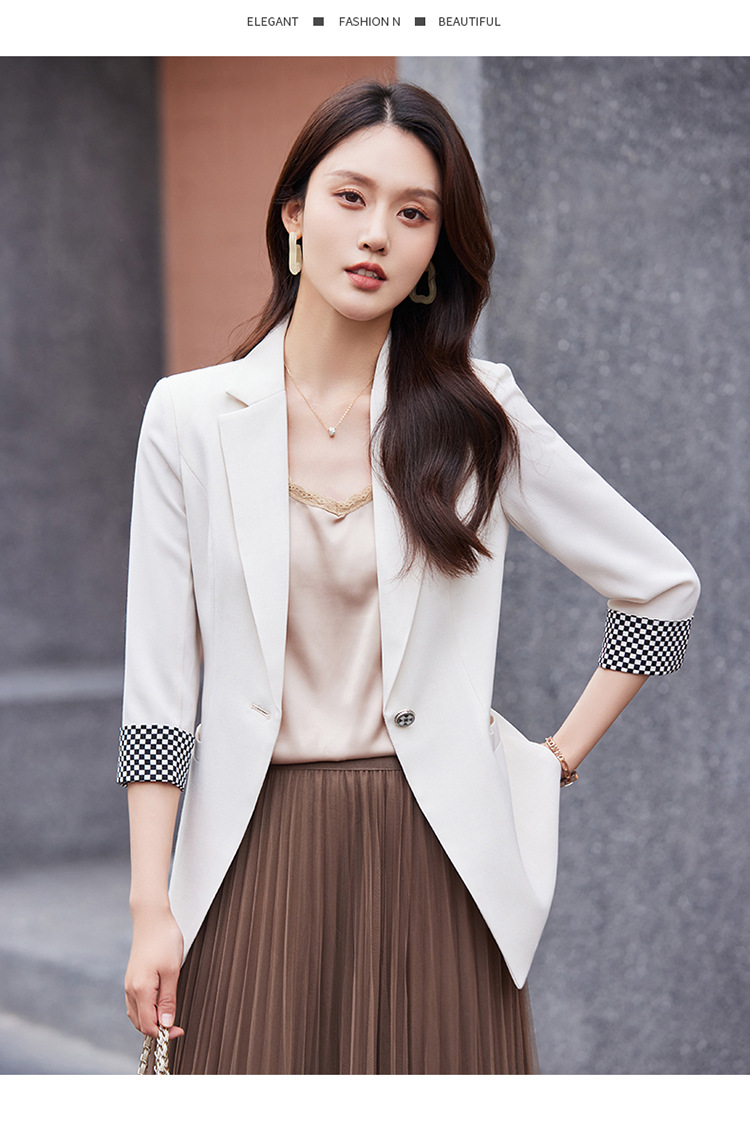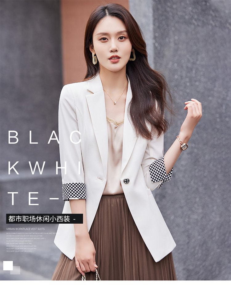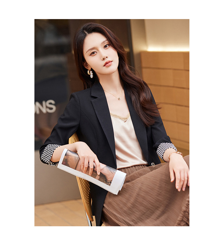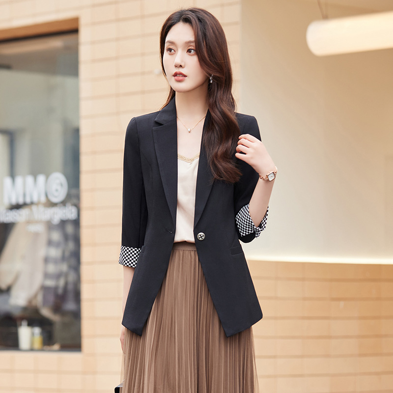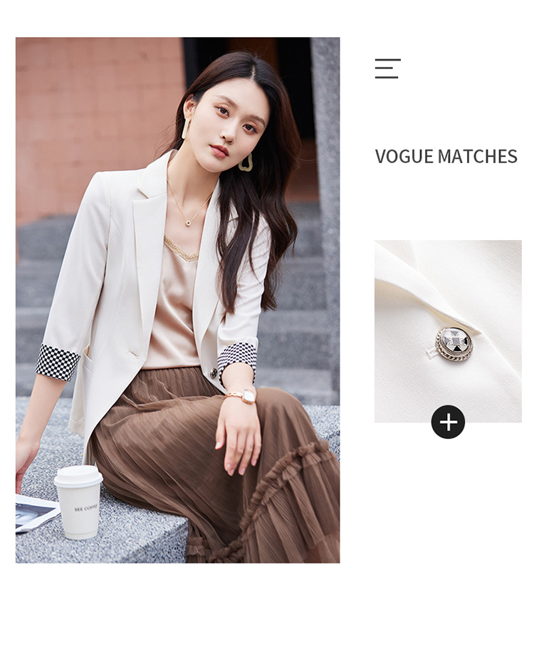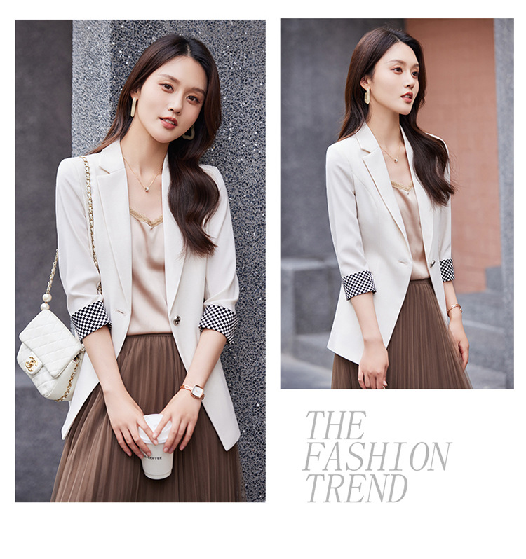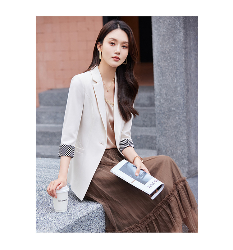 세븐 밸리 니앙 얇은 작은 세트 재킷 여성의 봄과 가을 새로운 우아한 올매치 세븐 포인트 슬리브 슬림 핏 작은 세트