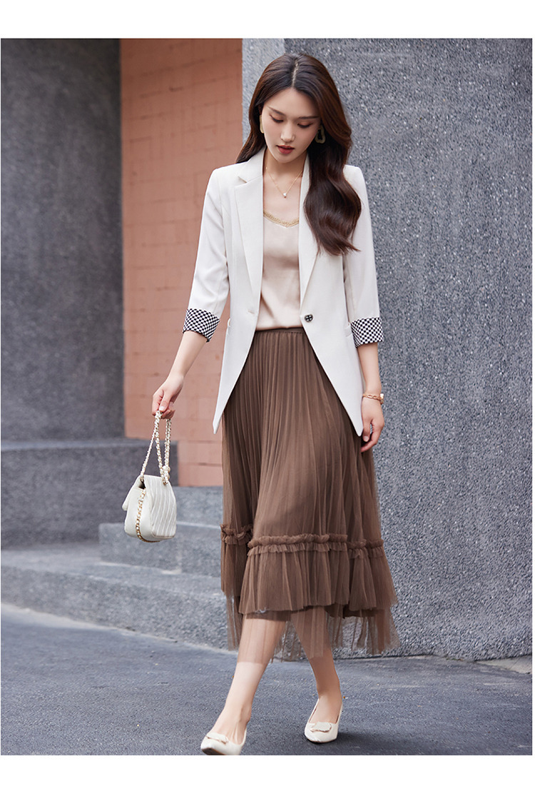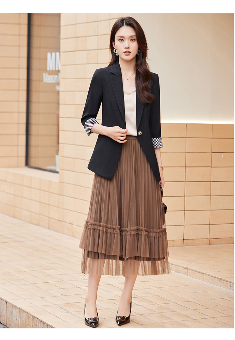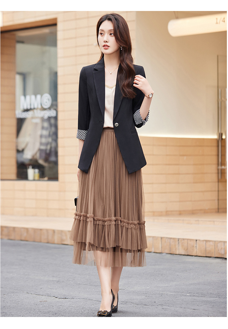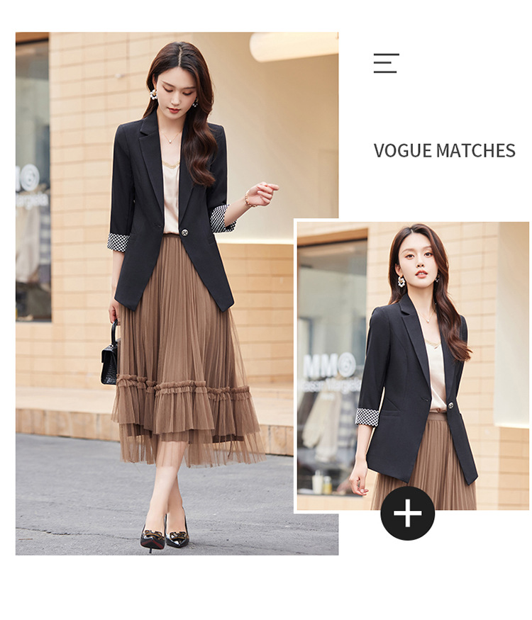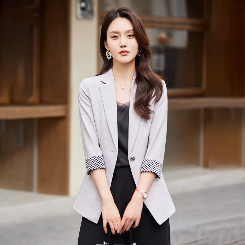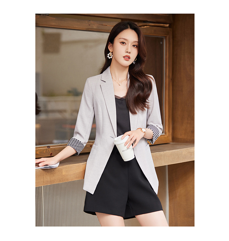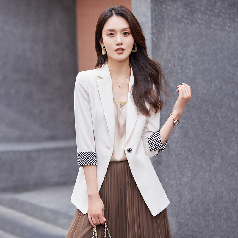 세븐 밸리 니앙 얇은 작은 세트 재킷 여성의 봄과 가을 새로운 우아한 올매치 세븐 포인트 슬리브 슬림 핏 작은 세트