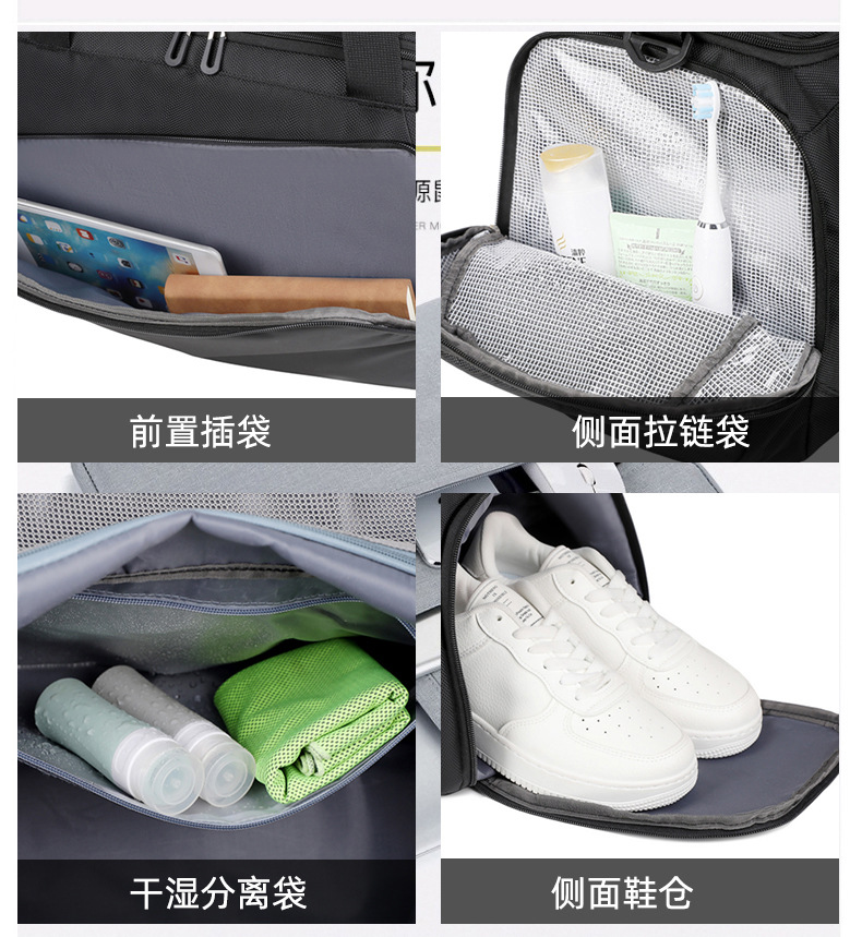 여행 배낭 독립적 인 신발 인쇄 로고 건조하고 젖은 분리 스포츠 배낭 다기능 여행 배낭
