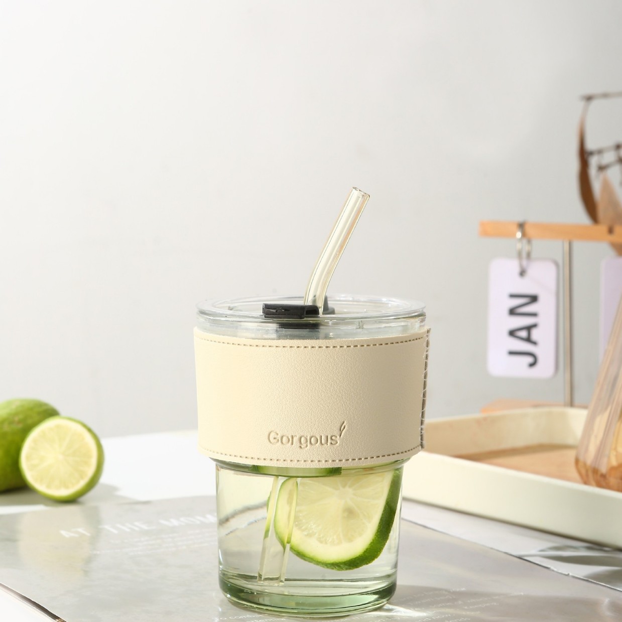 물컵, 유리컵, 고급스럽고 가벼운 럭셔리 스타일의 대나무 컵, 빨대 커피 주스 컵, 휴대용 인쇄 로고스토어 가기