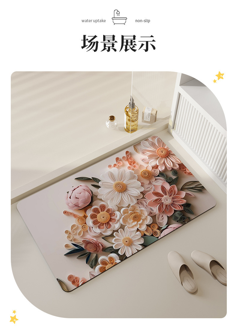 立体3D浴室吸水地垫软硅藻泥卫生间门口地毯家用防滑速干脚垫子